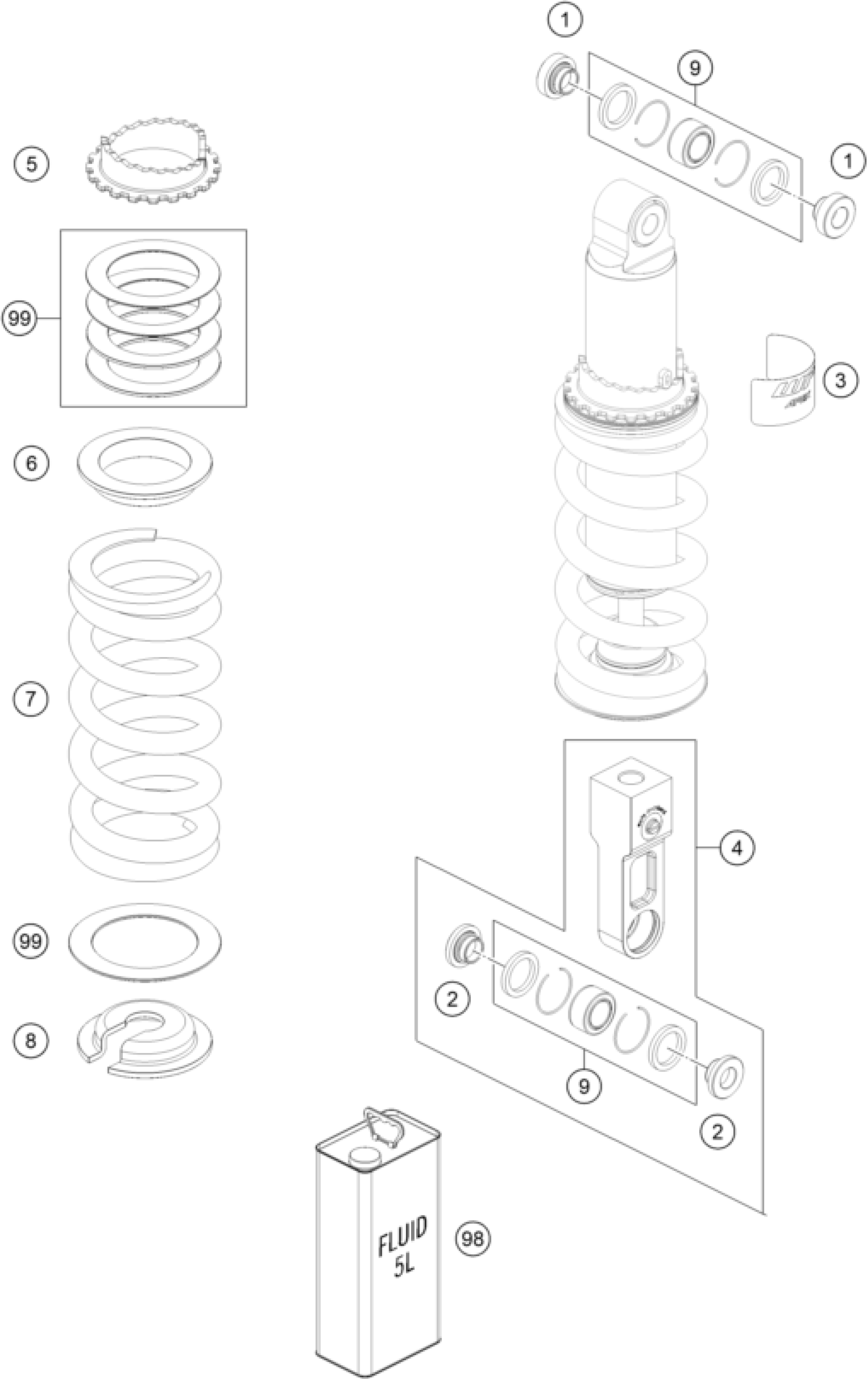 KTM 990 DUKE, black 2024 SHOCK ABSORBER DISASSEMBLED Diagram