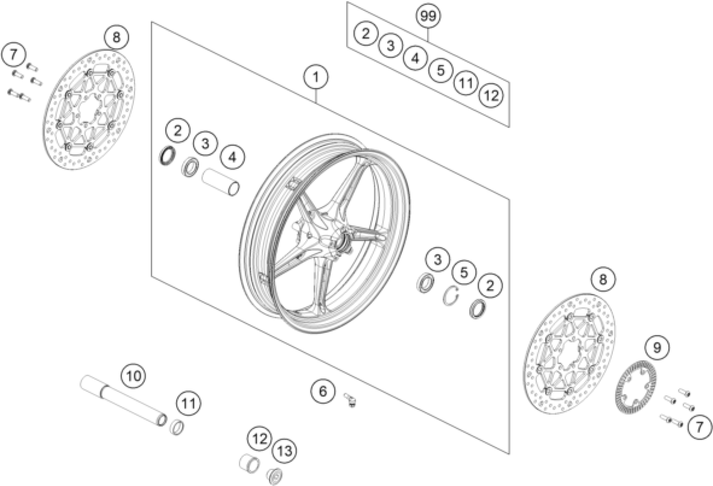 KTM 990 DUKE, orange 2024 FRONT WHEEL Diagram