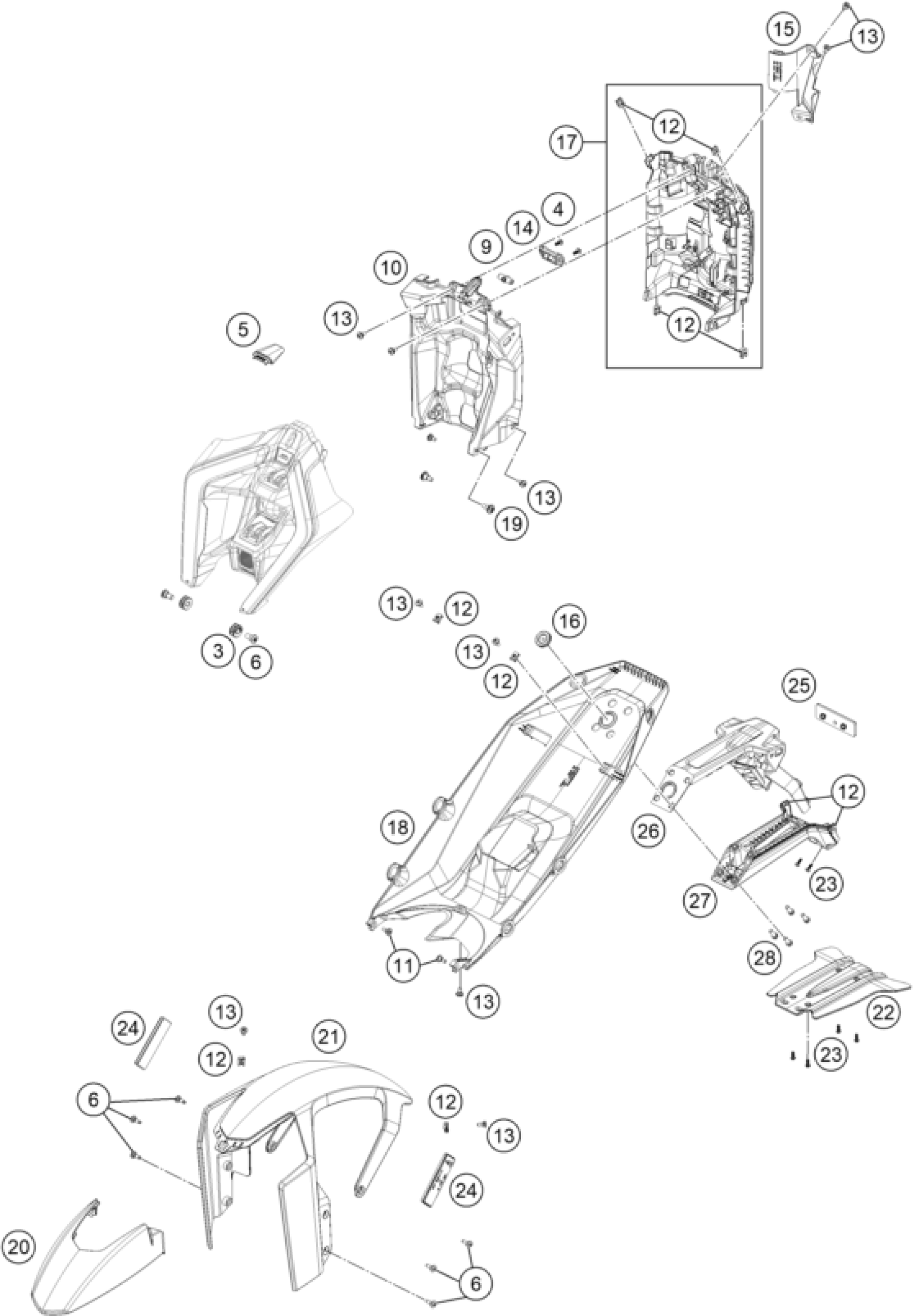 KTM 990 DUKE, orange 2024 MASK, FENDERS Diagram