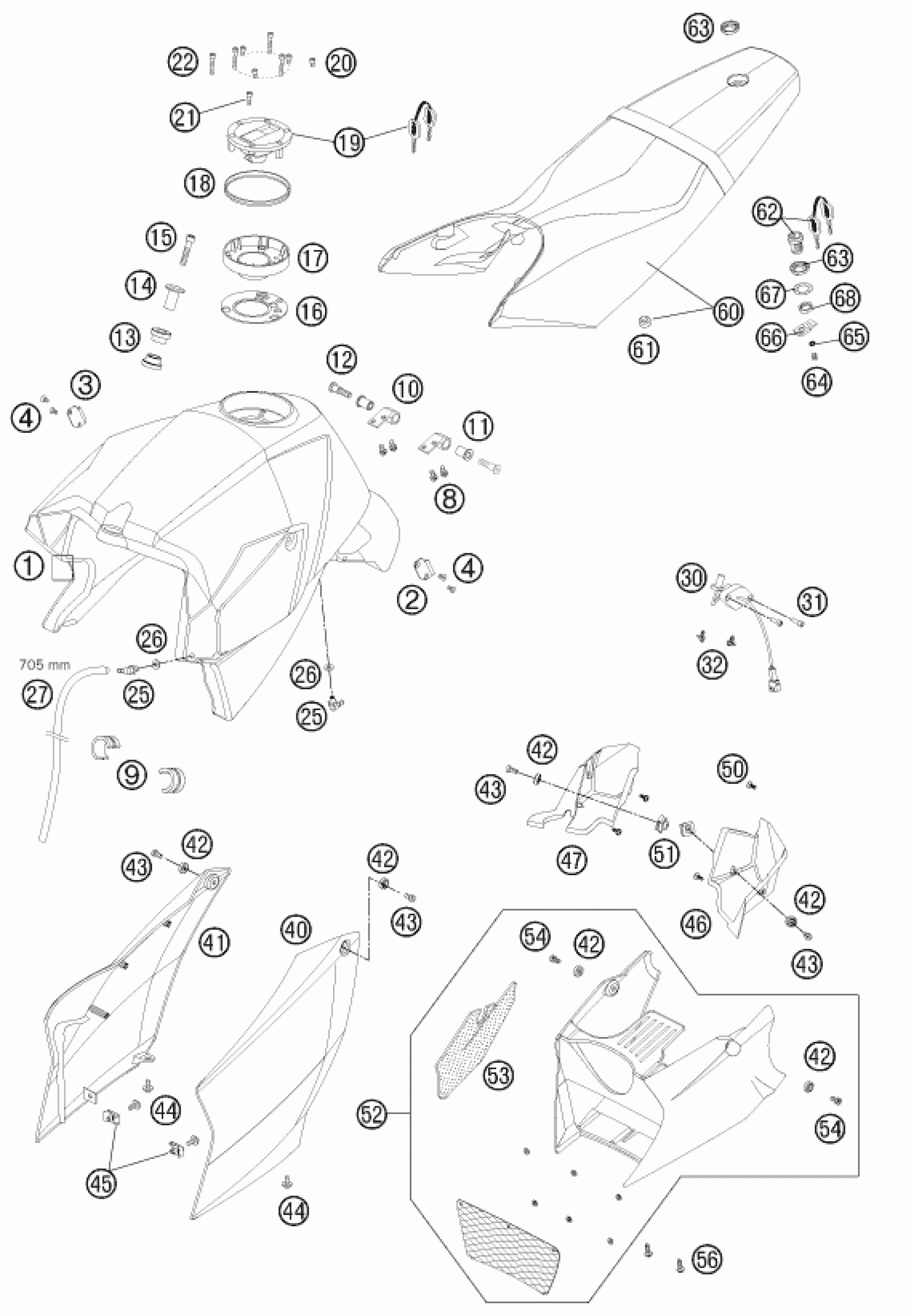 KTM 990 SUPER DUKE BLACK 2011 TANK, SEAT Diagram