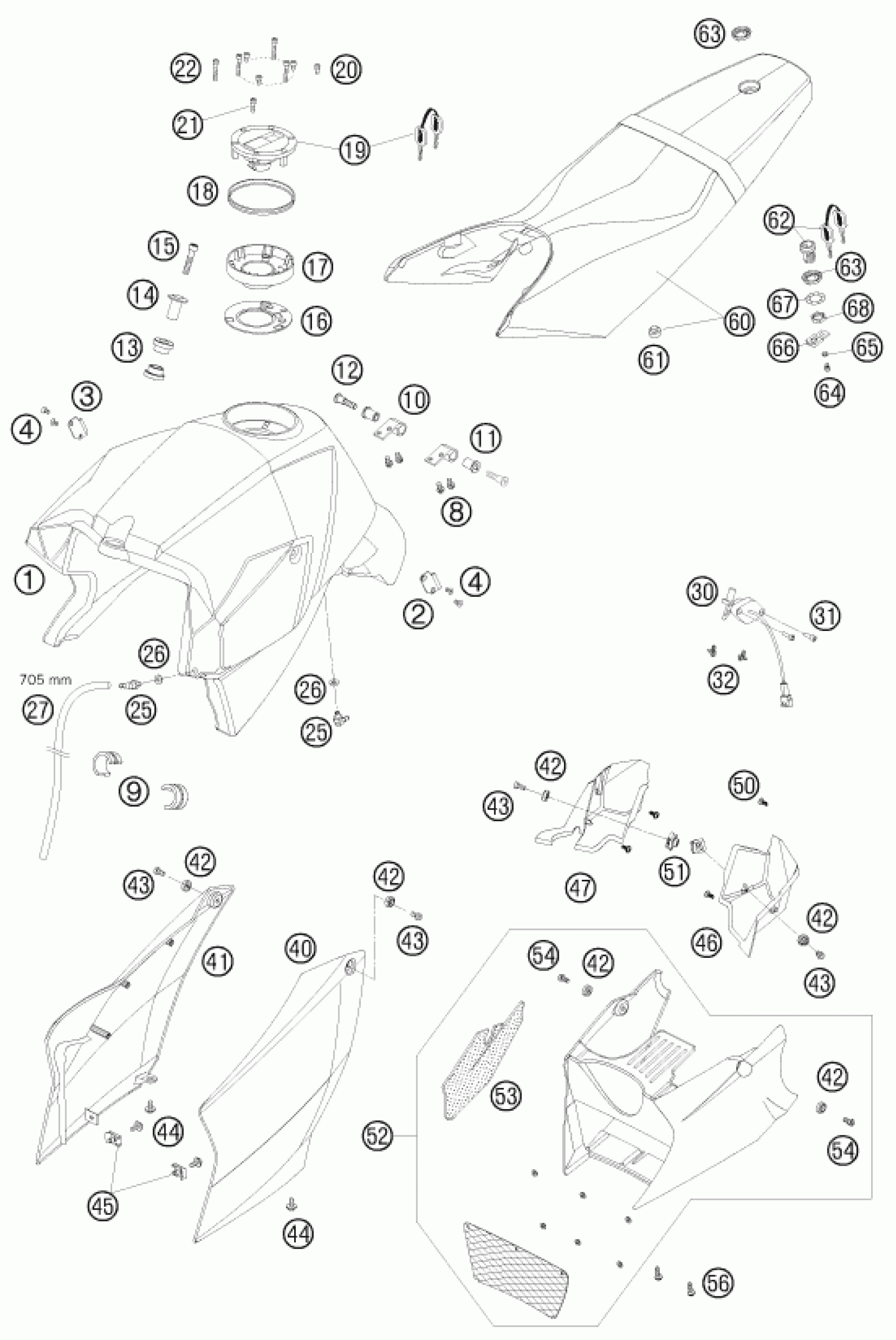 KTM 990 SUPER DUKE ORANGE 2008 TANK, SEAT Diagram