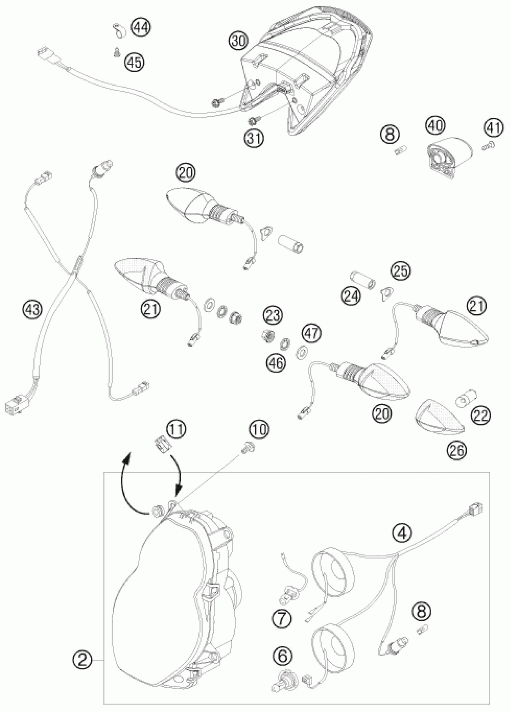 KTM 990 SUPER DUKE R 2008 LIGHTING SYSTEM Diagram