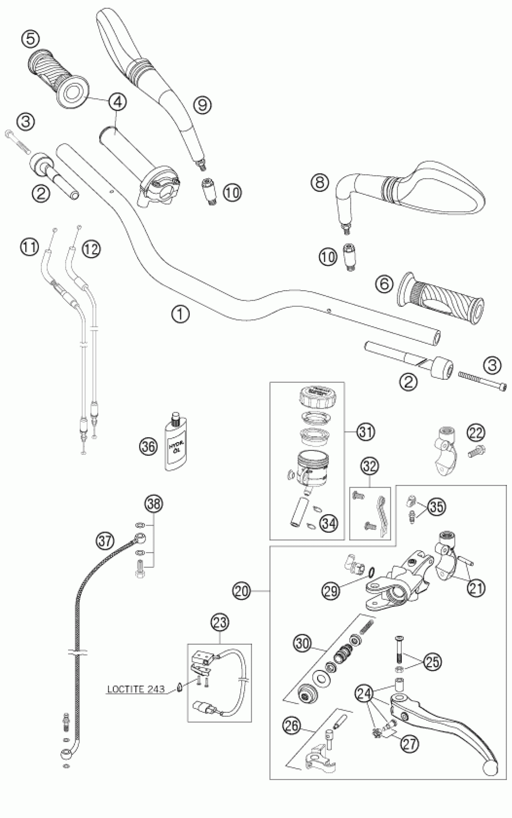 KTM 990 SUPERDUKE BLACK 2005 HANDLEBAR, CONTROLS Diagram