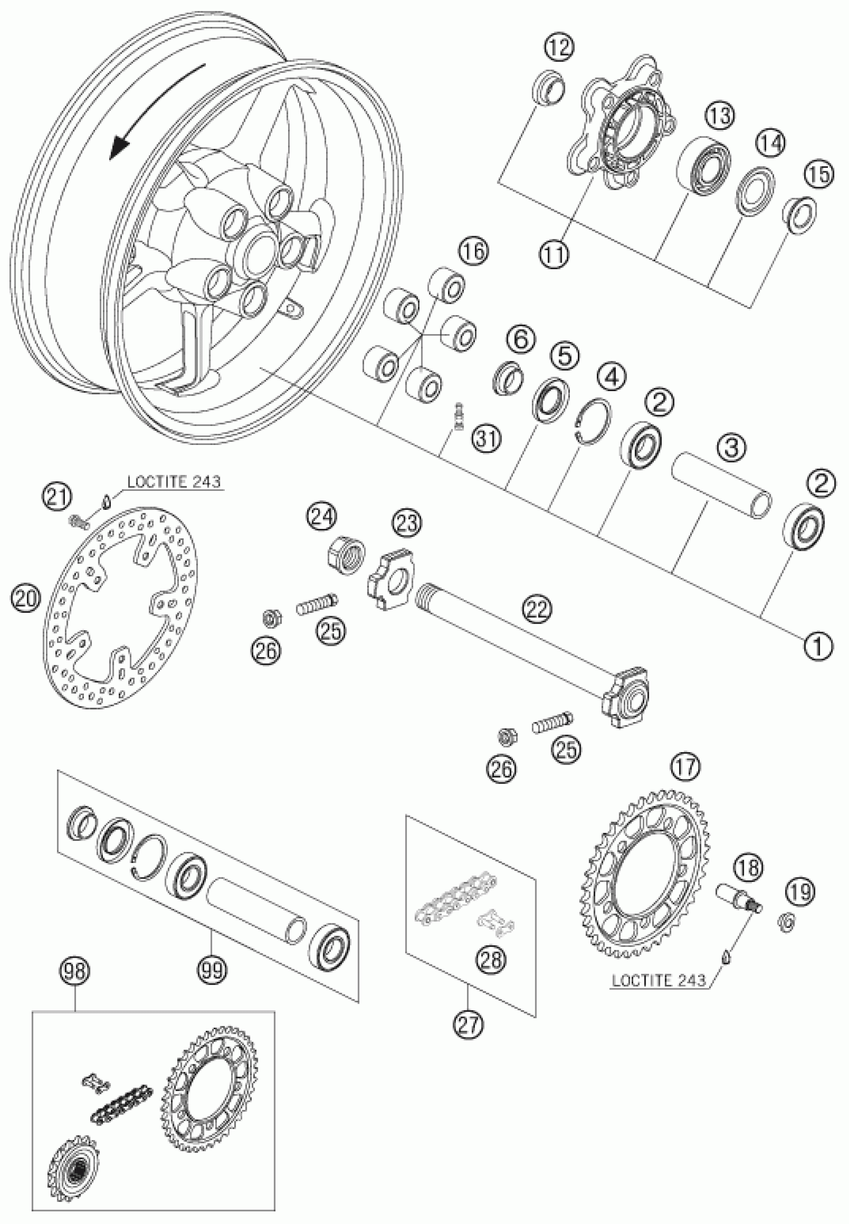 KTM 990 SUPERDUKE BLACK 2005 REAR WHEEL Diagram