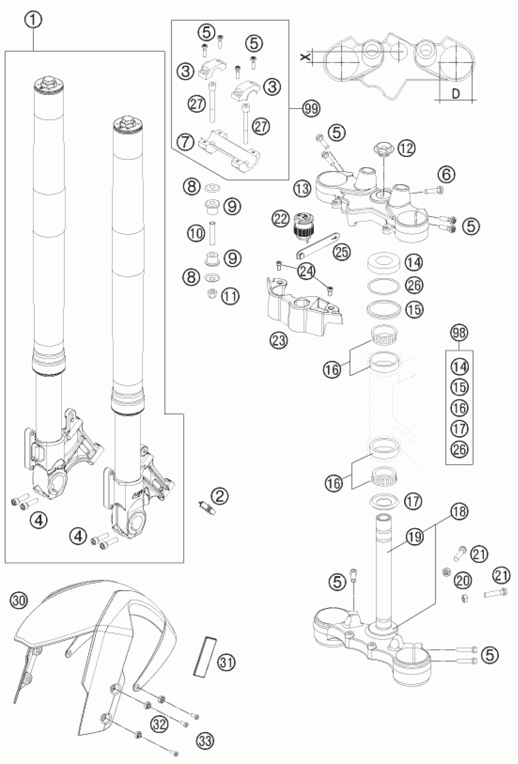 KTM 990 SUPERM. T BLACK ABS 2012 FRONT FORK, TRIPLE CLAMP Diagram