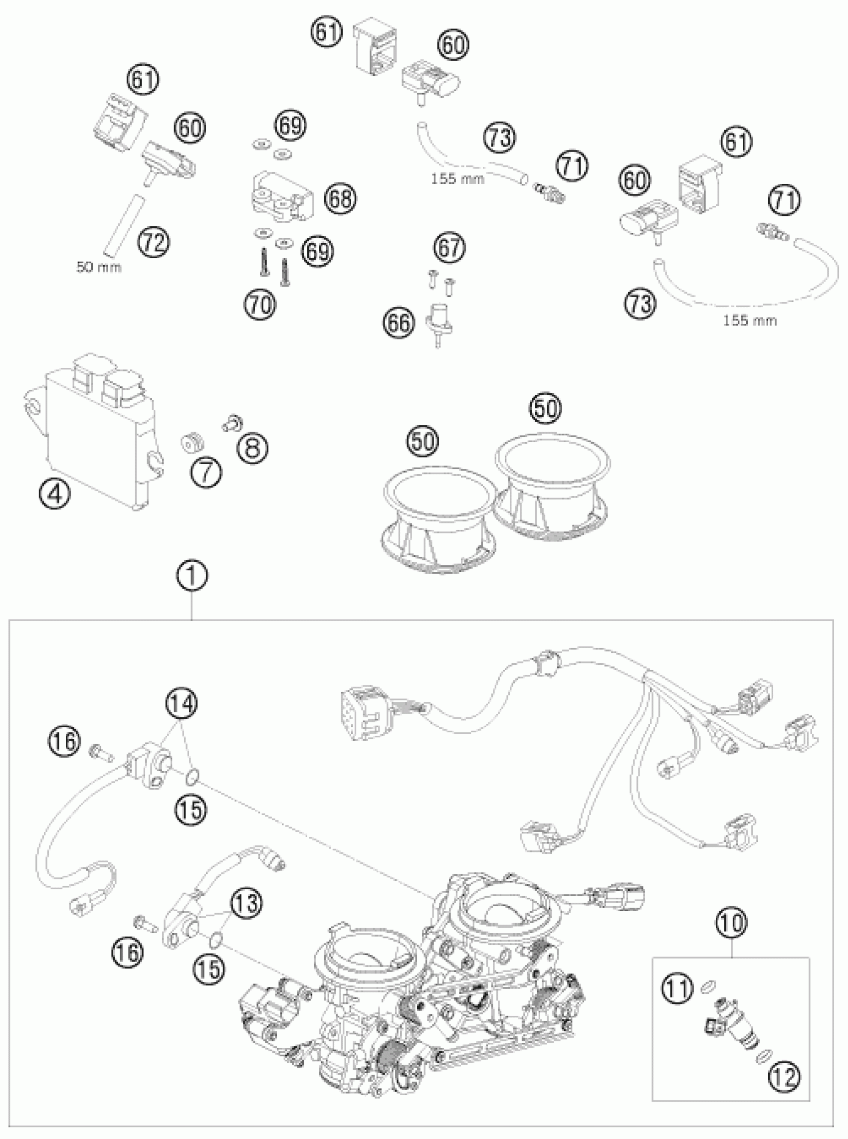 KTM 990 SUPERMOTO BLACK 2008 THROTTLE BODY Diagram