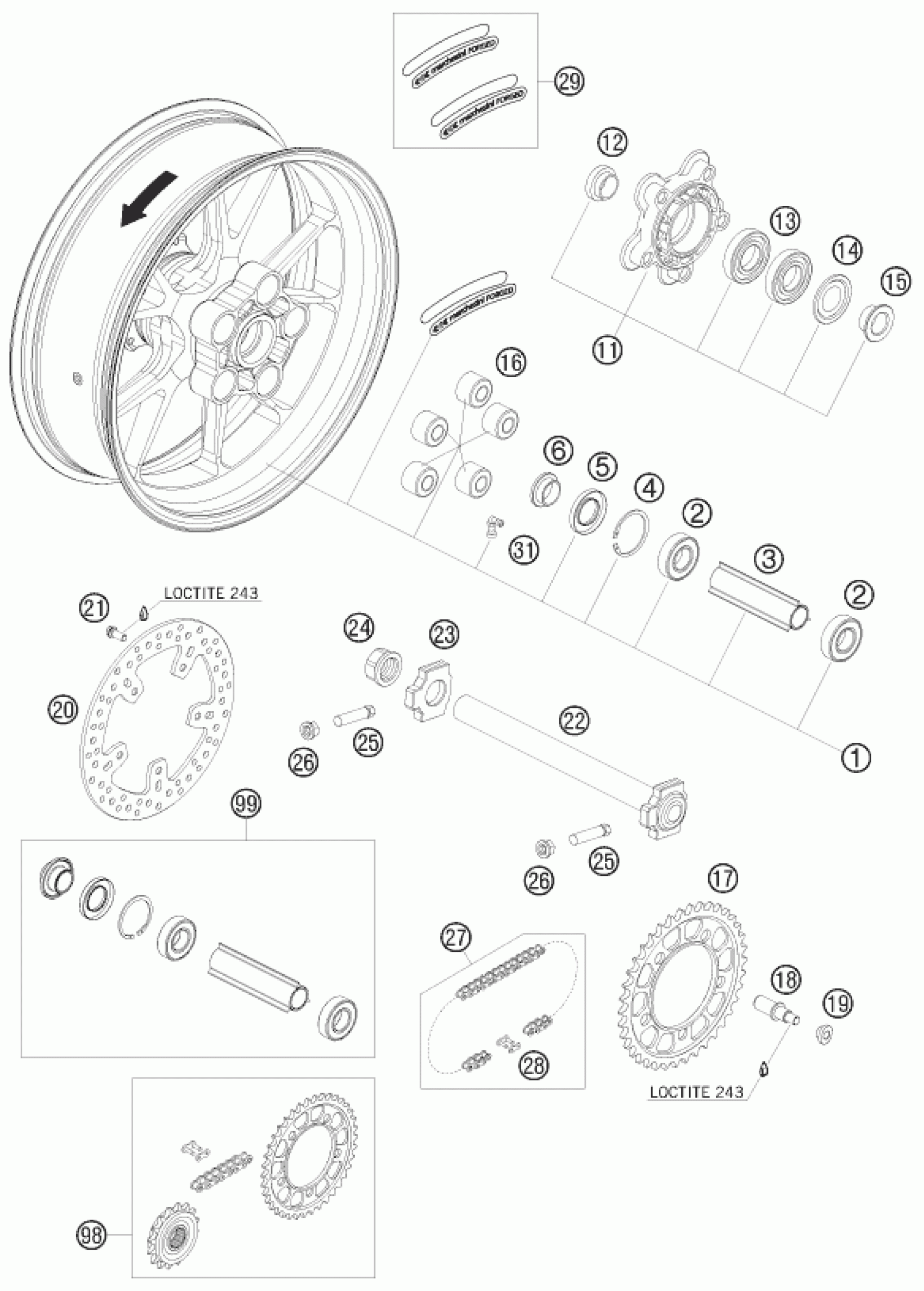 KTM 990 SUPERMOTO R 2009 REAR WHEEL Diagram