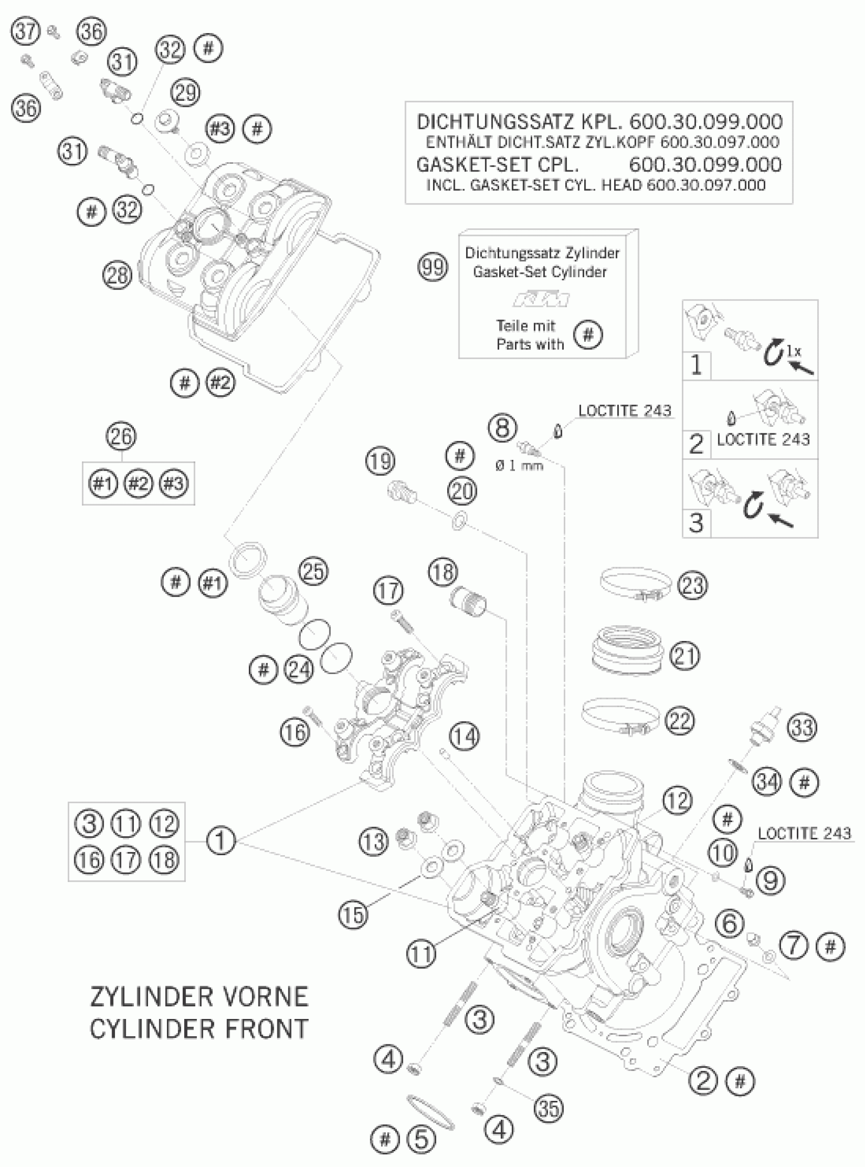 KTM 990 SUPERMOTO R 2010 CYLINDER HEAD FRONT Diagram