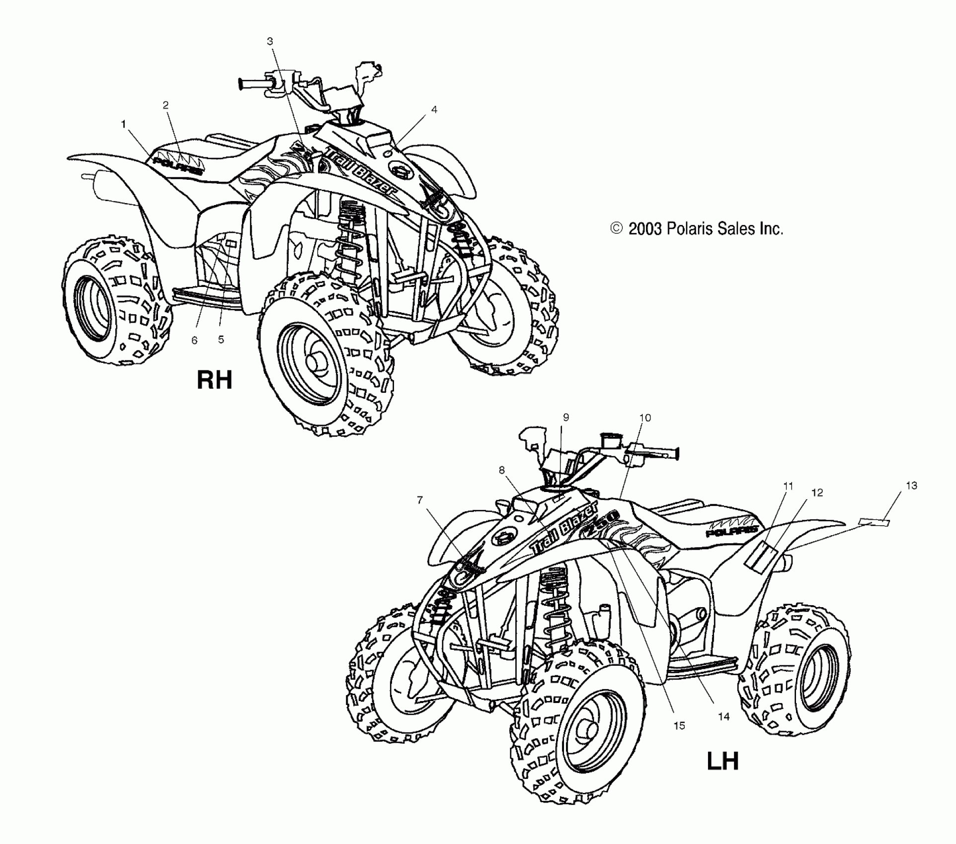 Polaris A04BA25CA TRAIL BLAZER - A04BA25CA/CB DECALS - A04BA25CA/CB (4986208620A09) Diagram