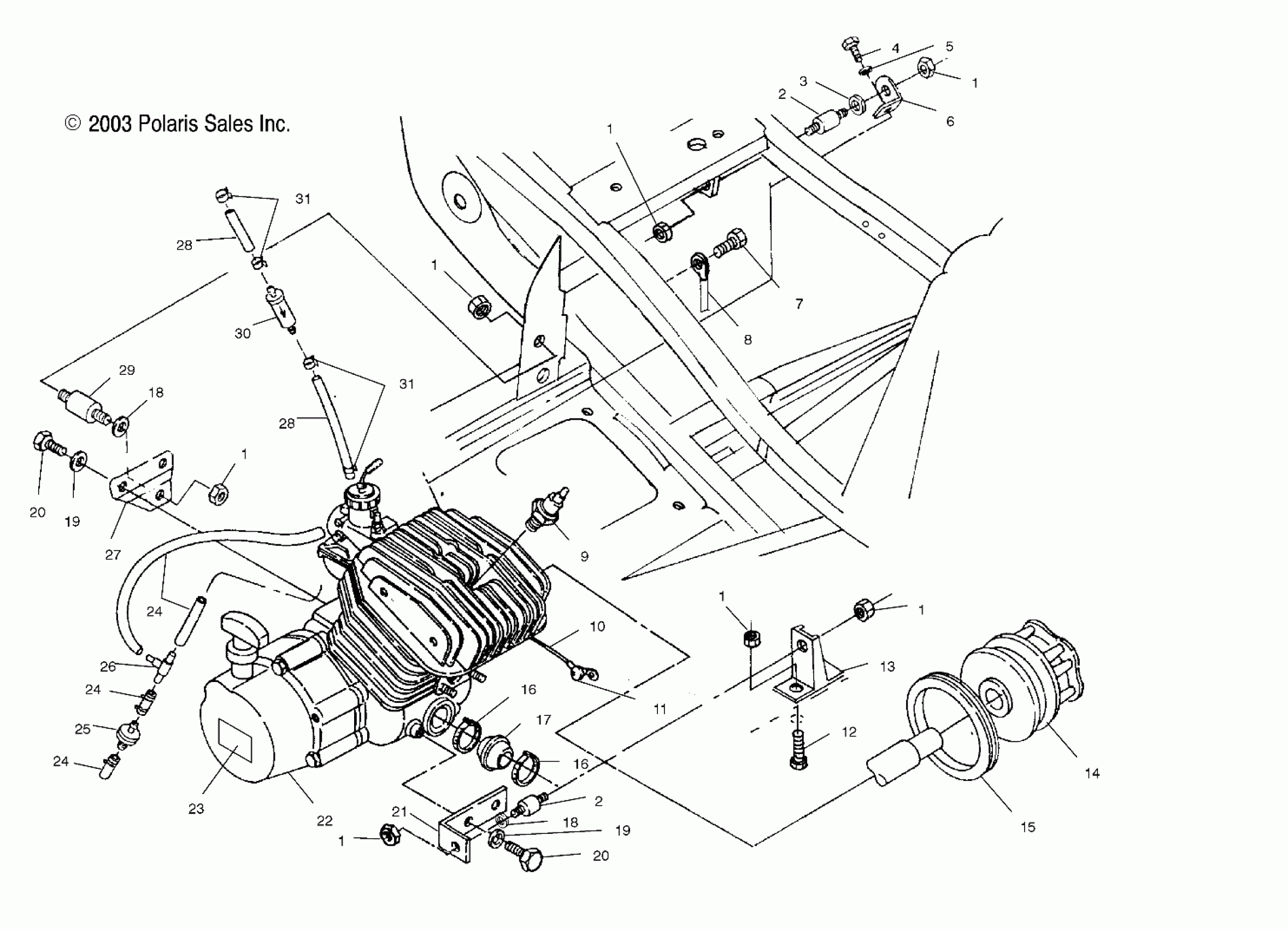 Polaris A04BA25CA TRAIL BLAZER - A04BA25CA/CB ENGINE MOUNTING - A04BA25CA/CB (4986208620A07) Diagram