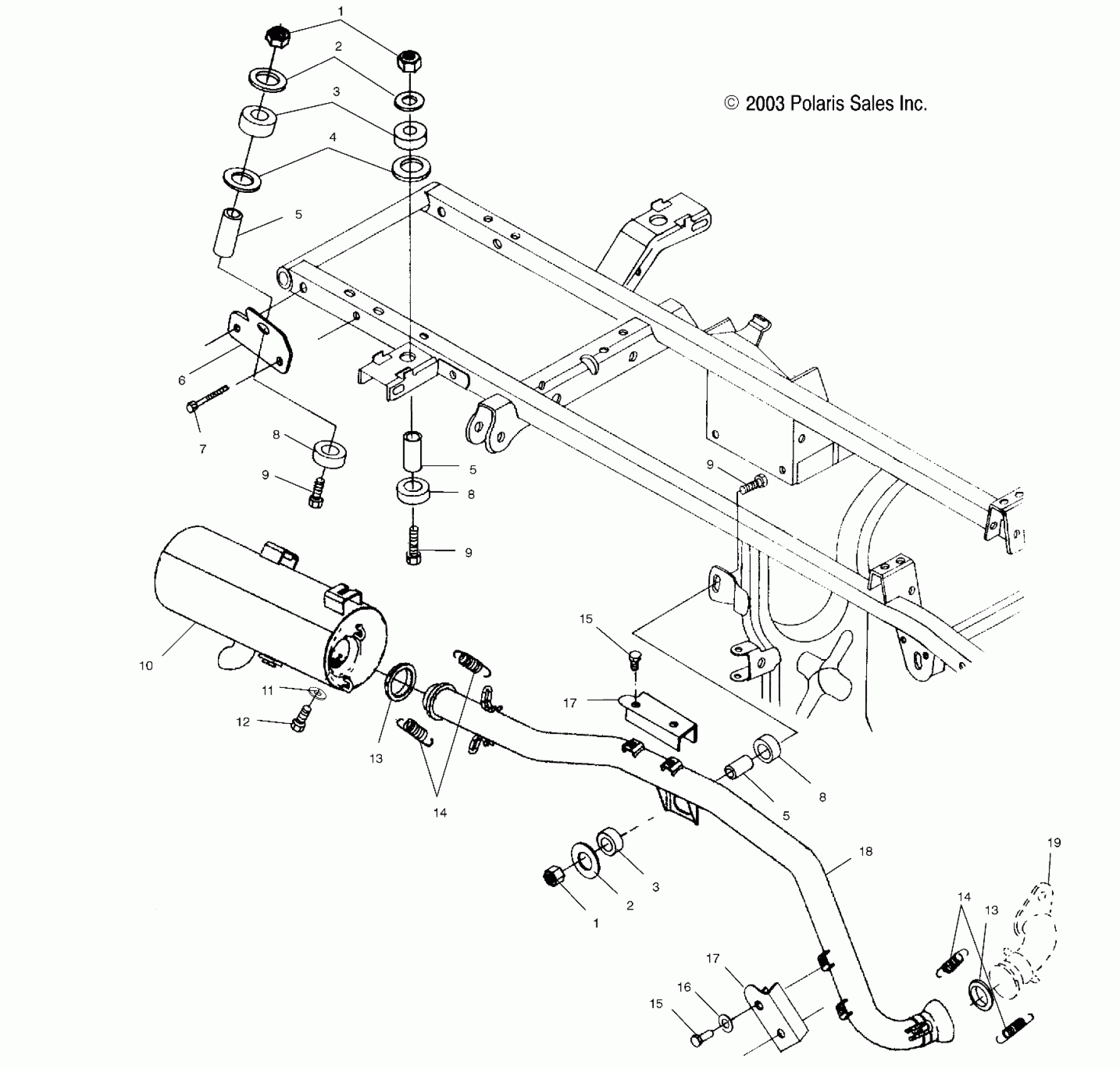 Polaris A04CH50AQ SPORTSMAN 500 - A04CH50AO/AQ/AR/AS/AT/AV/AW/AX EXHAUST SYSTEM - A04CH50AO/AQ/AR/AS/AT/AV/AW/AX (4987288728B01) Diagram