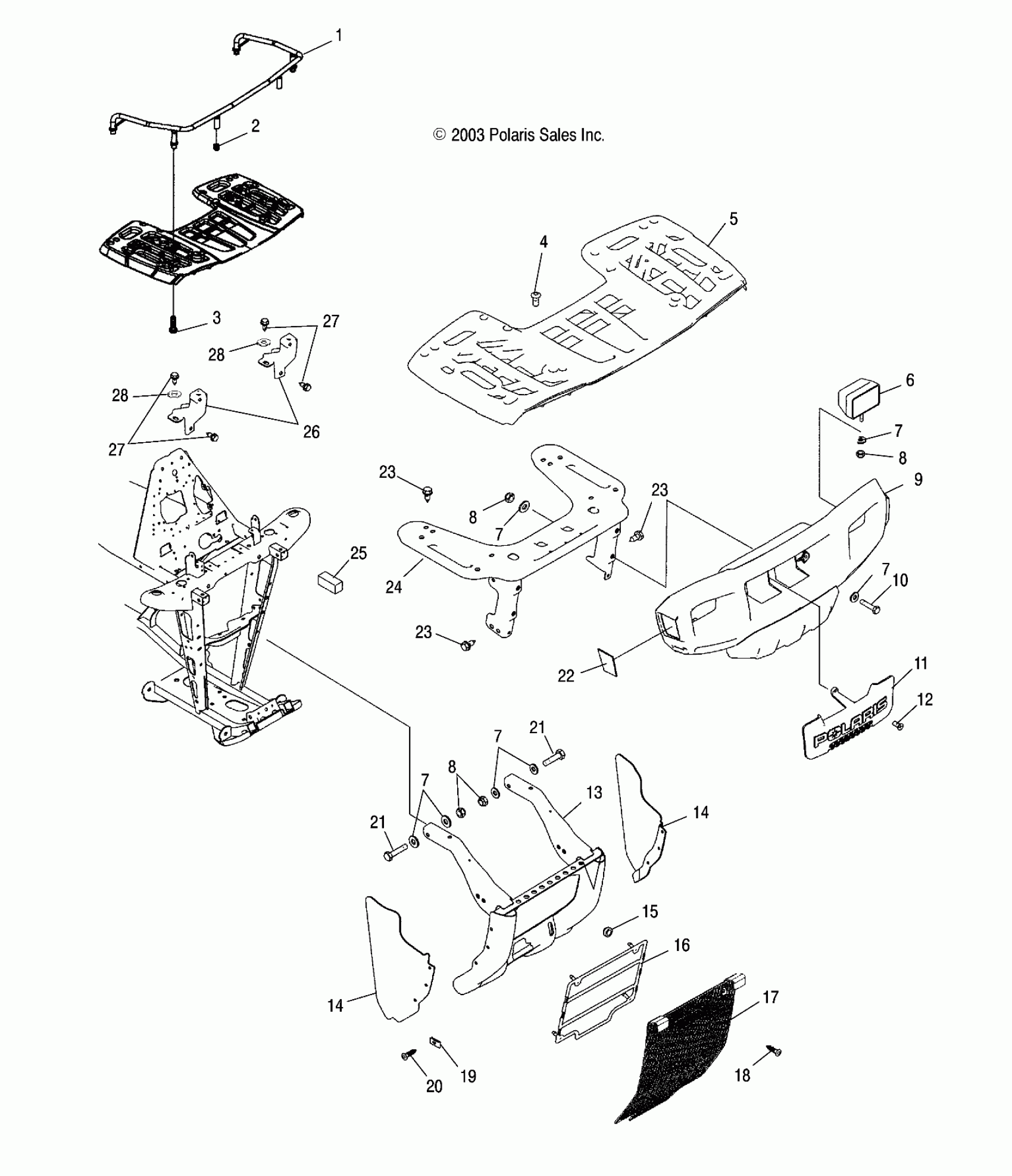 Polaris A04CH50AQ SPORTSMAN 500 - A04CH50AO/AQ/AR/AS/AT/AV/AW/AX FRONT RACK AND BUMPER MOUNTING - A04CH50AO/AQ/AR/AS/AT/AV/AW/AX (4987288728A07) Diagram