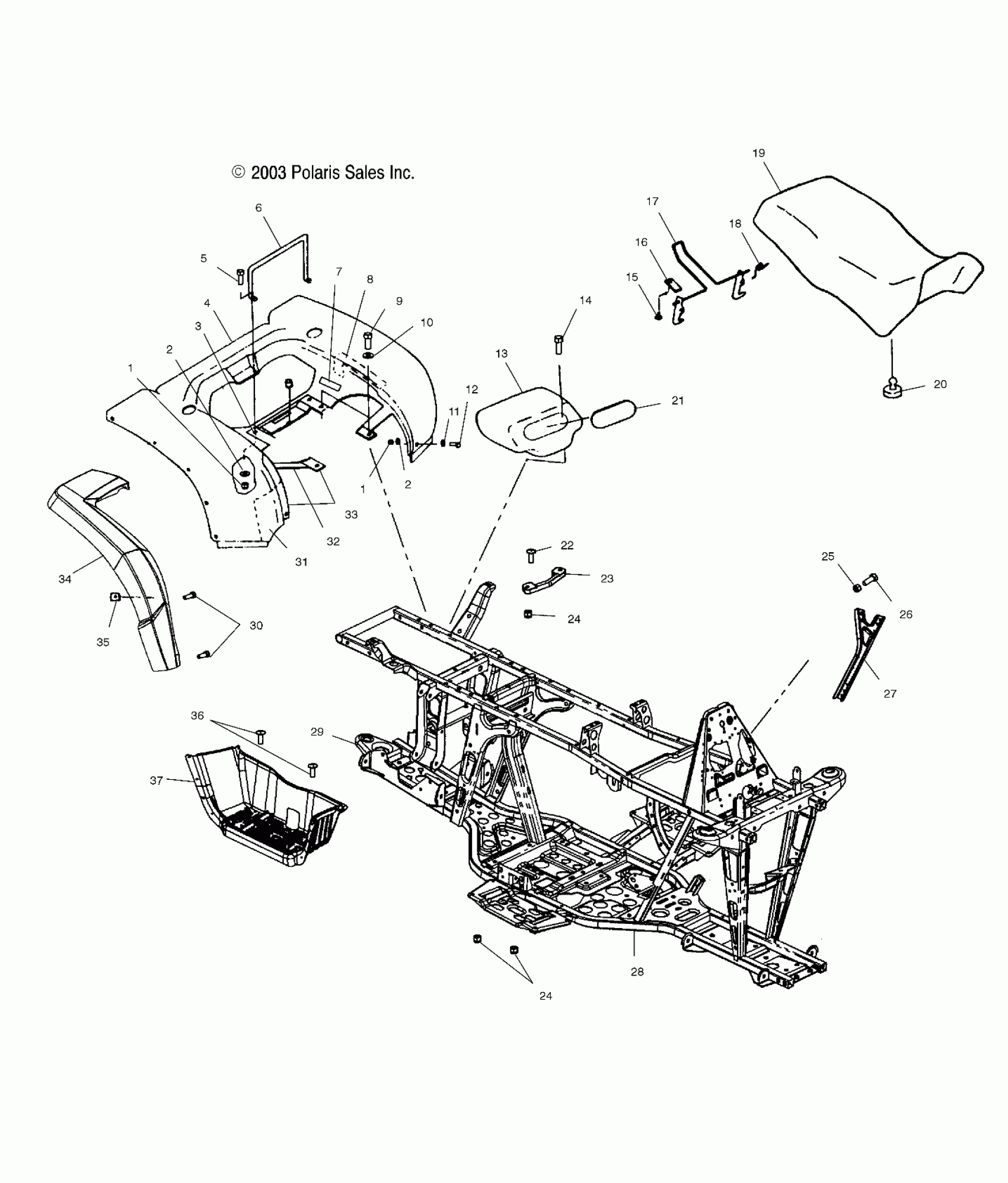 Polaris A04CH59AF SPORTSMAN 600 - A04CH59AF/AH/AJ/AT/AV REAR CAB, SEAT AND MAIN FRAME - A04CH59AF/AH/AJ/AT/AV (4986108610A03) Diagram