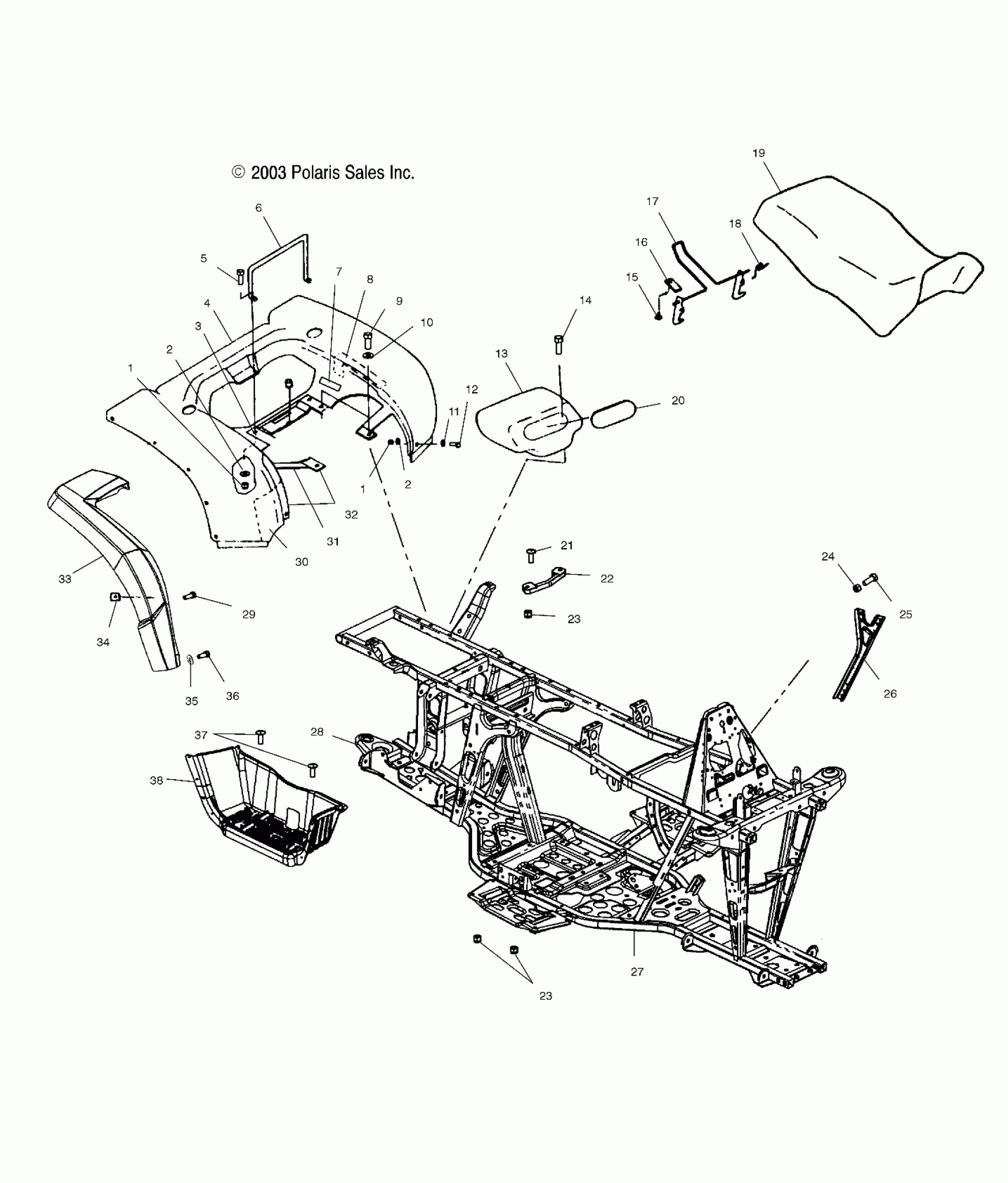 Polaris A04CH59AK SPORTSMAN 600 - A04CH59AK/AL/AN/AQ/AW REAR CAB, SEAT and MAIN FRAME - A04CH59AK/AL/AN/AQ/AW (4987318731A03) Diagram