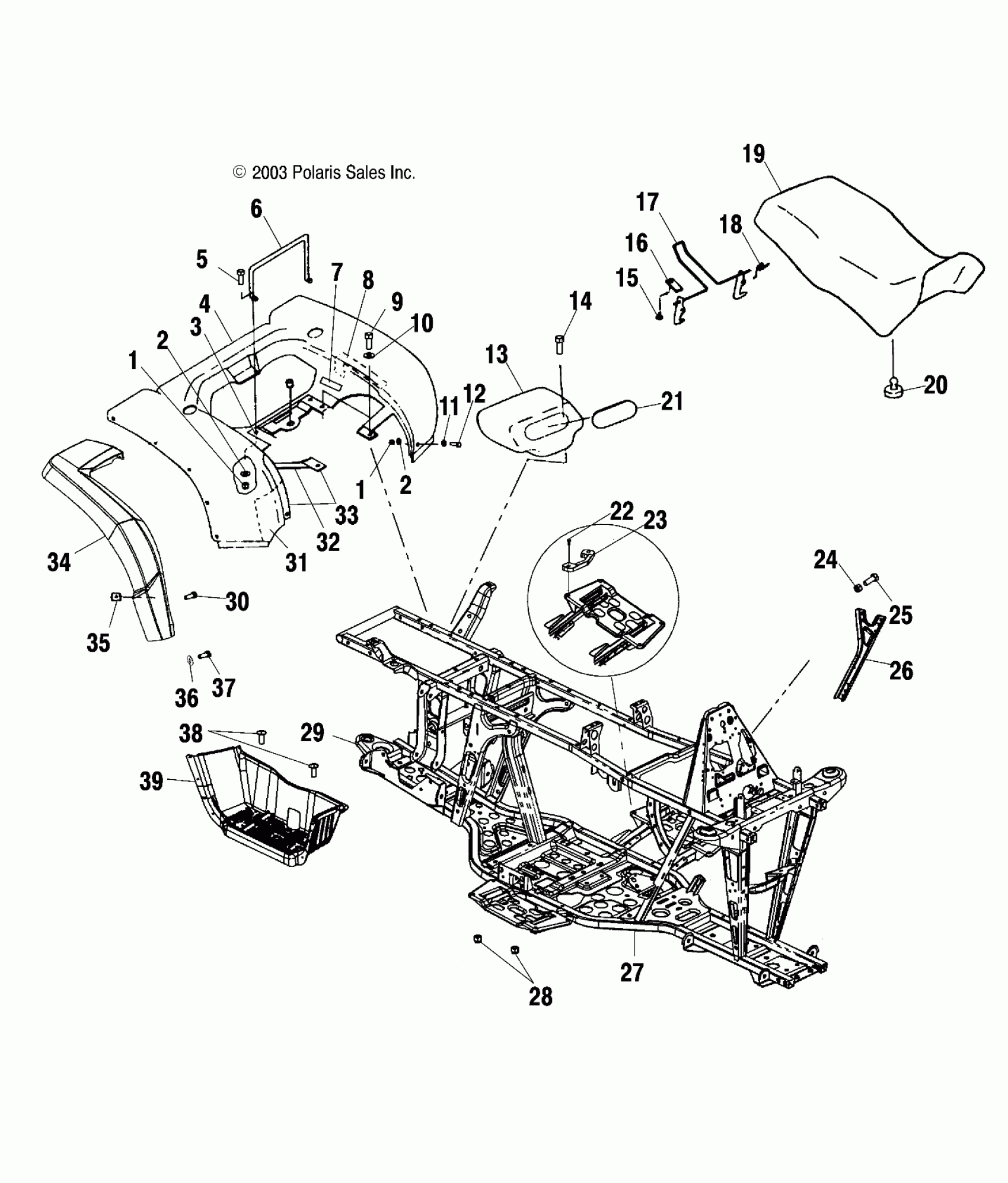Polaris A04CH68AC SPORTSMAN 700 - A04CH68AC/AF/AH/AJ/AT/AV REAR CAB/SEAT/MAIN FRAME - A04CH68AC/AF/AH/AJ/AT/AV (4986128612A03) Diagram