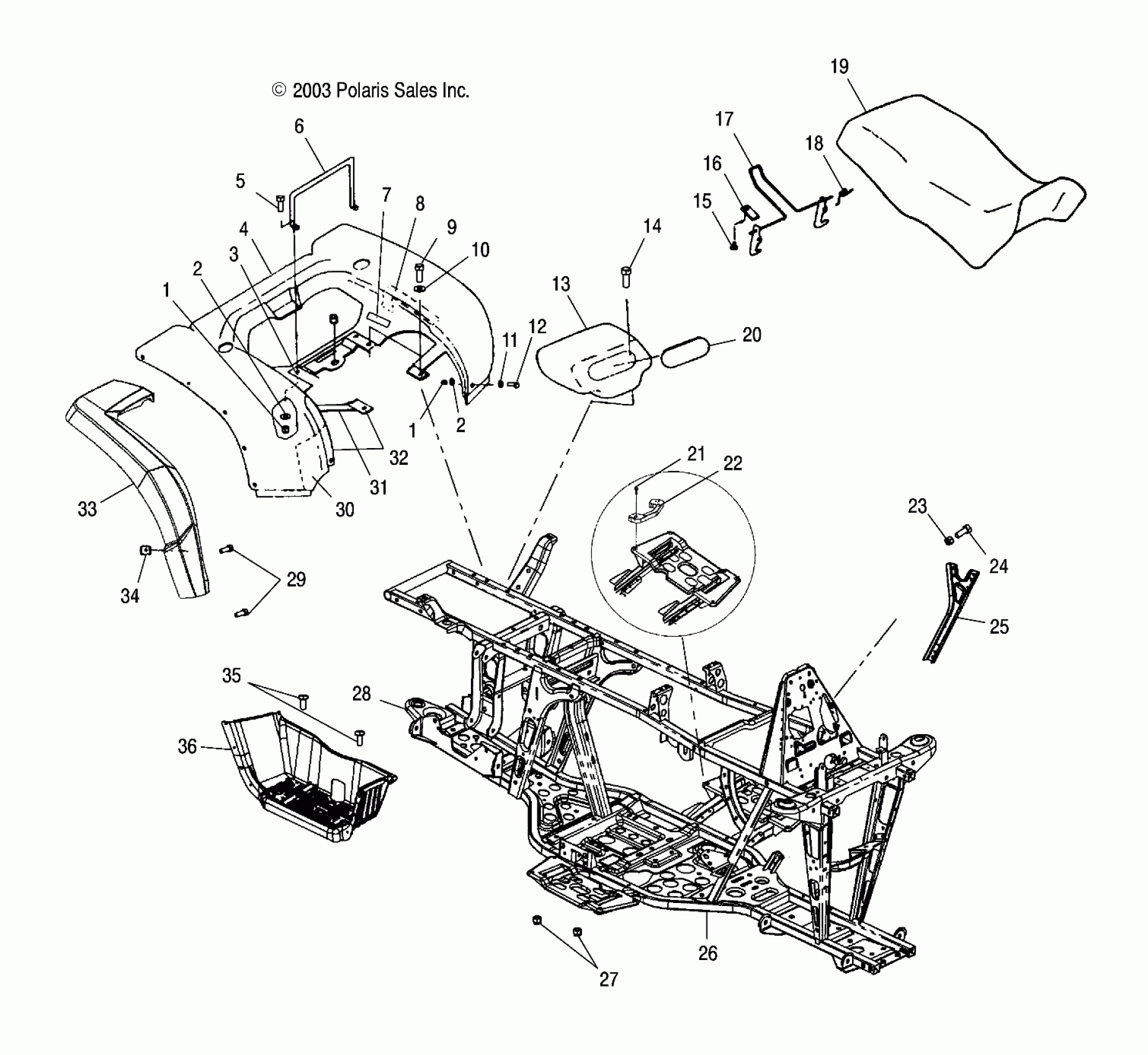 Polaris A04CH68AU/CU SPORTSMAN 700 - A04CH68AP/AQ/AU/CU REAR CAB, SEAT and MAIN FRAME - A04CH68AP/AQ/AU/CU (4987468746A03) Diagram