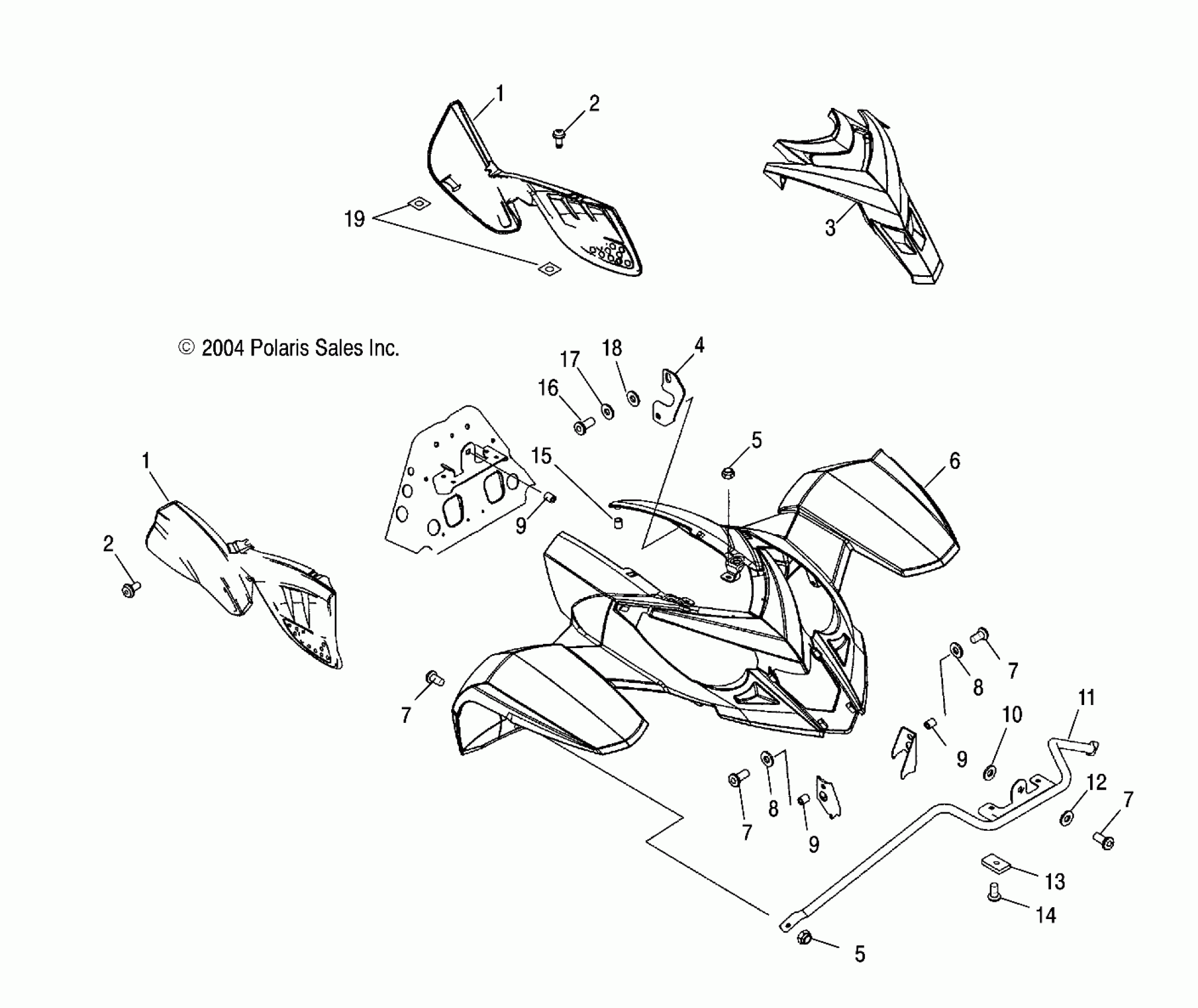 Polaris A05GJ50AA PREDATOR 500 - A05GJ50AA/AB/AC FRONT CAB and SIDE PANELS - A05GJ50AA/AB/AC (4995119511A05) Diagram