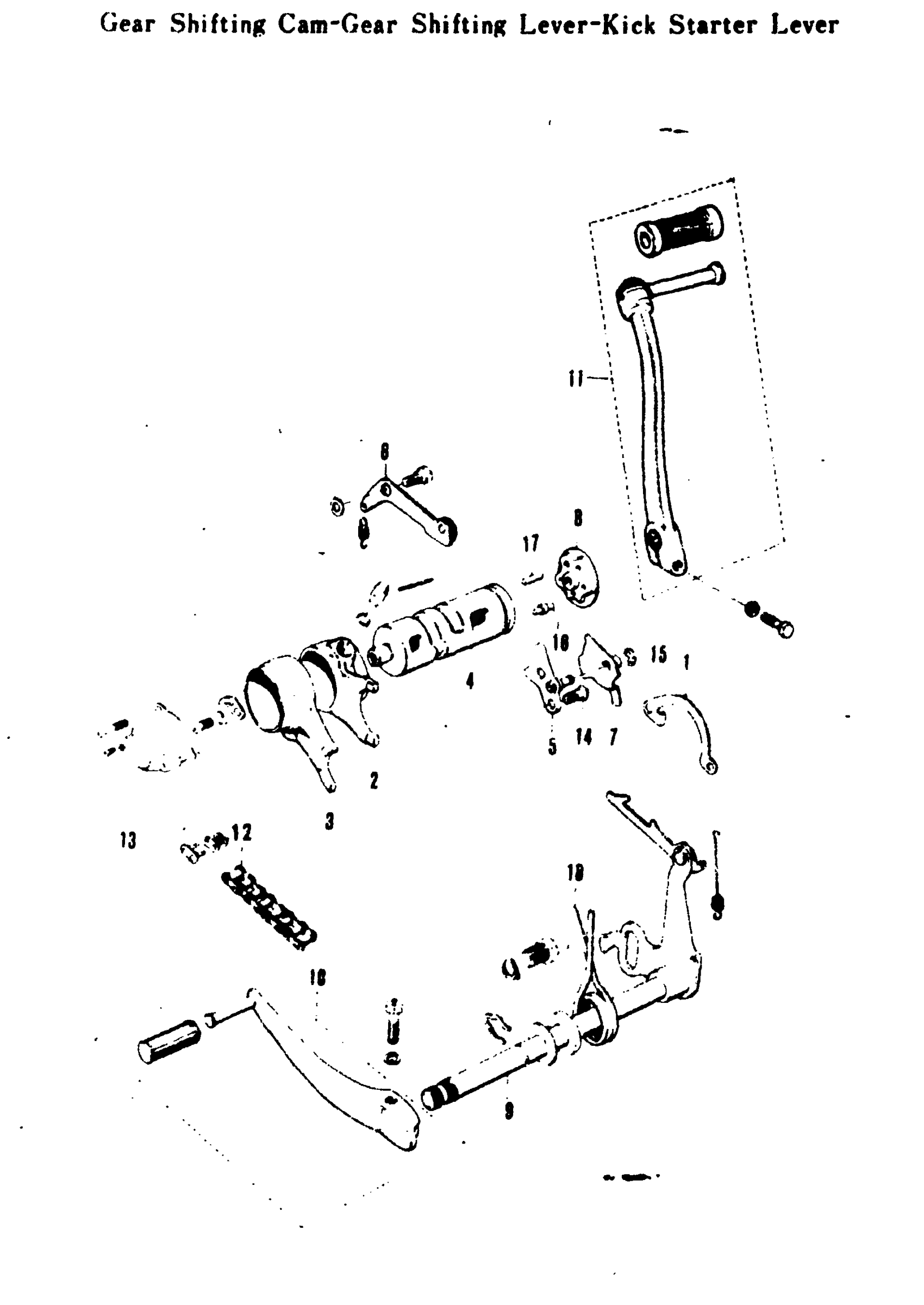 GEAR SHIFTING CAM-GEAR SHIFTING LEVER-KICK STARTER LEVER