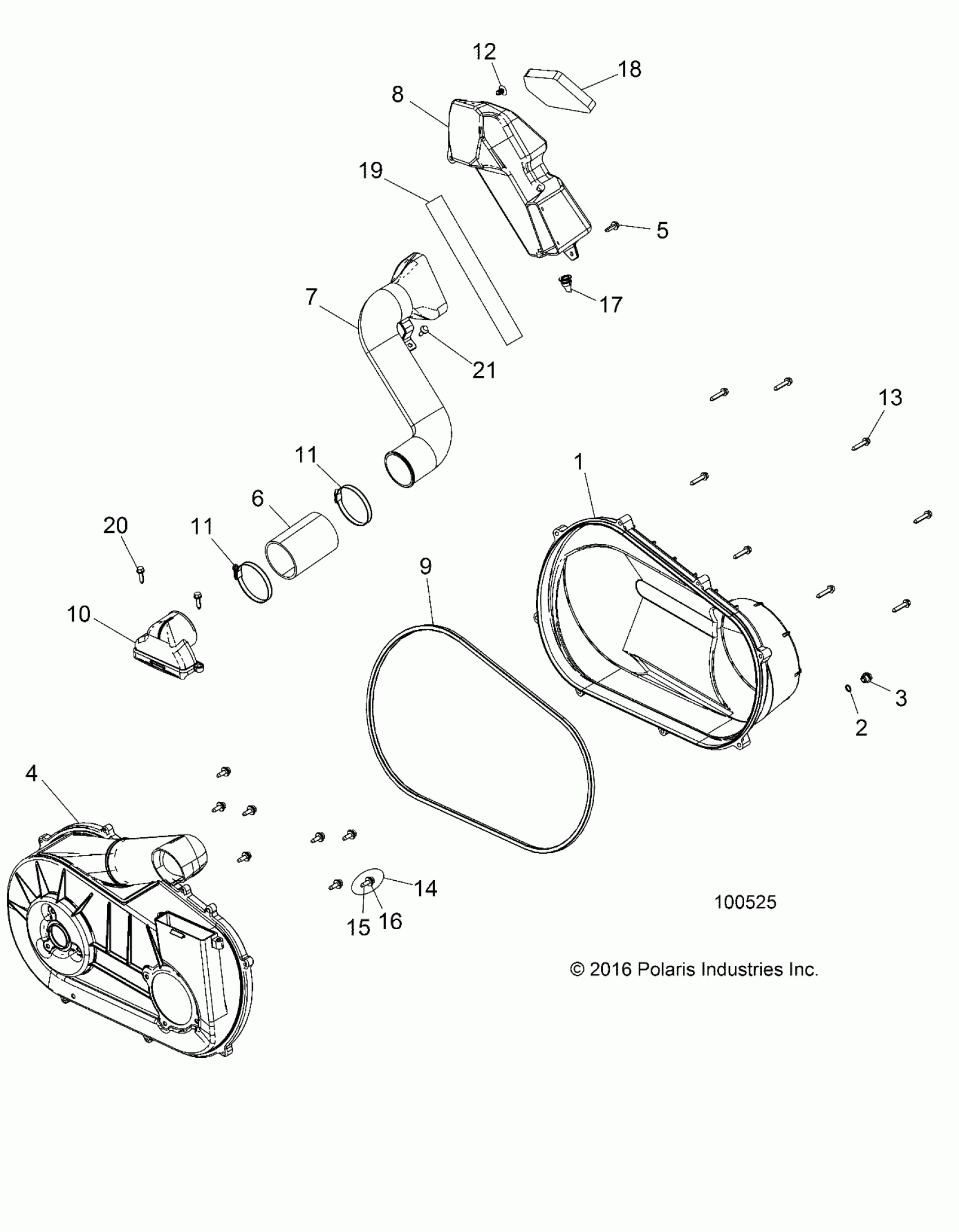 DRIVE TRAIN, CLUTCH COVER AND DUCTING - A17DAA50A7 (100525)