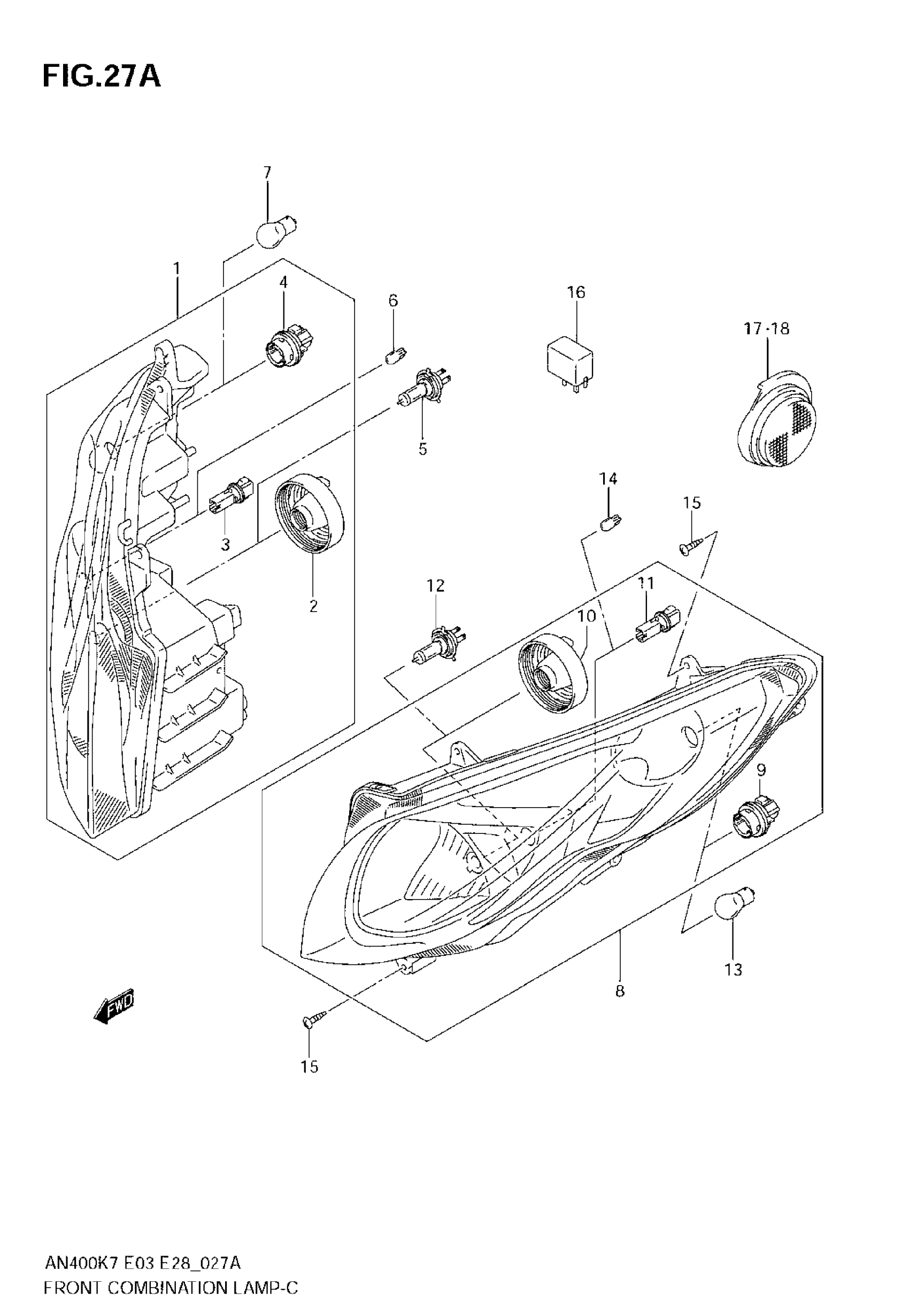 Suzuki AN400 (2008) FRONT COMBINATION LAMP (MODEL K8) Diagram