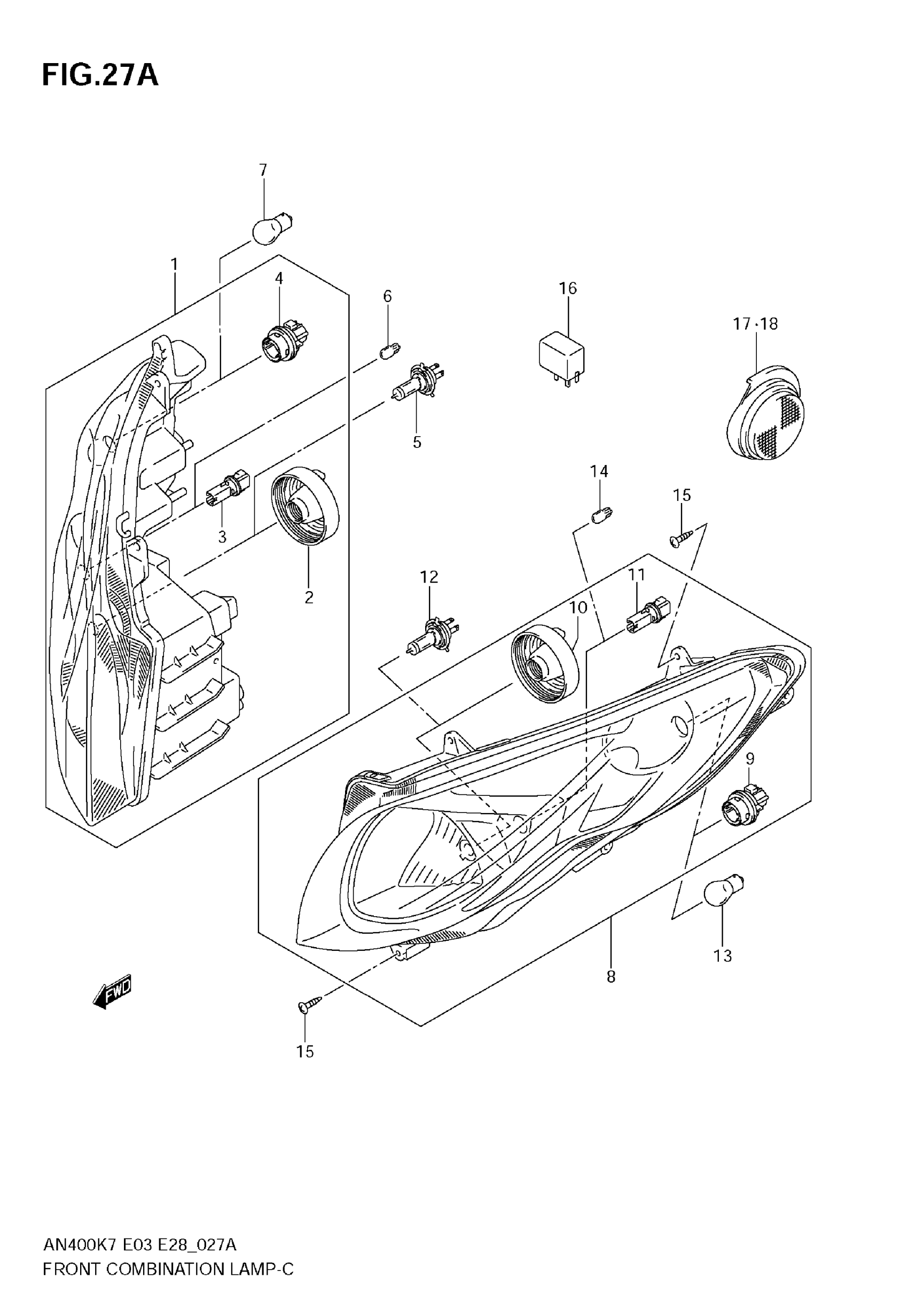 Suzuki AN400AK9 (2009) FRONT COMBINATION LAMP (MODEL K8/K9) Diagram