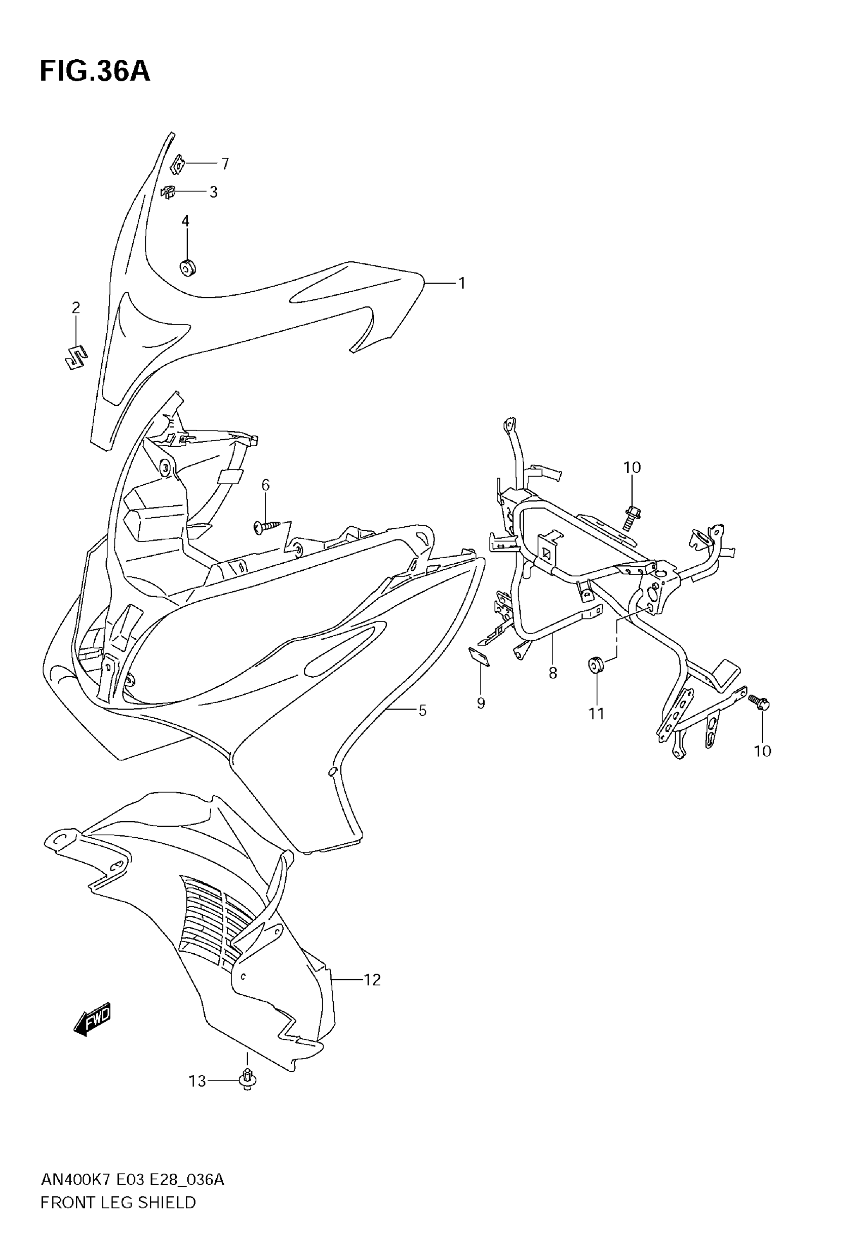Suzuki AN400AK9 (2009) FRONT LEG SHIELD (MODEL K9) Diagram