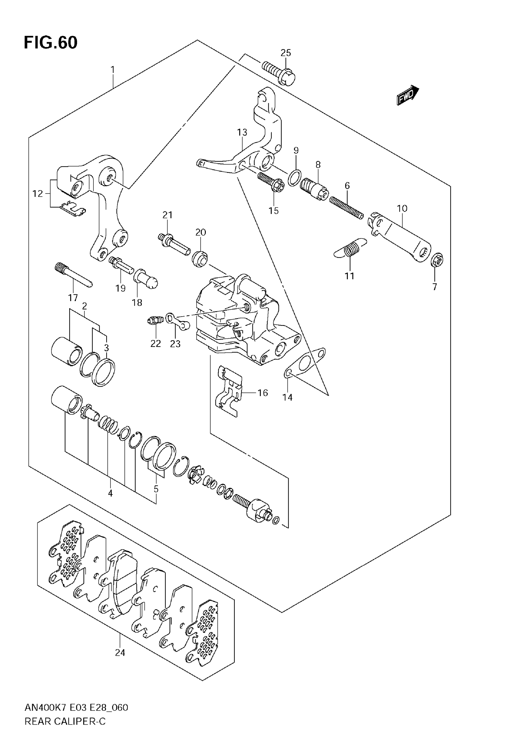 Suzuki AN400AK9 (2009) REAR CALIPER (AN400K7/K8/K9) Diagram