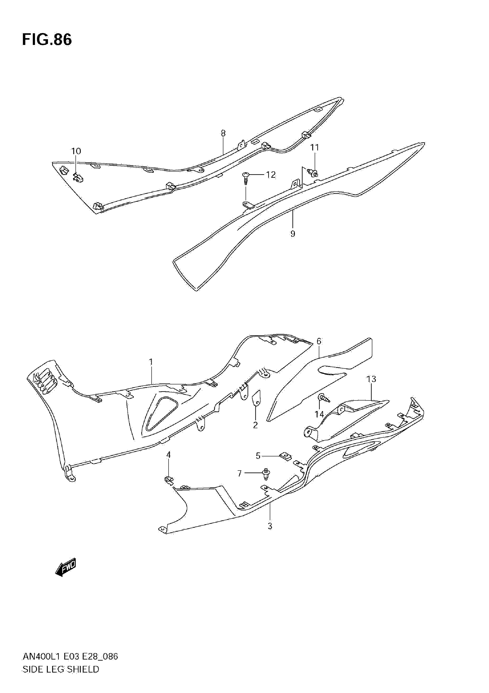 Suzuki AN400AL1 (2011) SIDE LEG SHIELD (AN400ZA L1 E33) Diagram