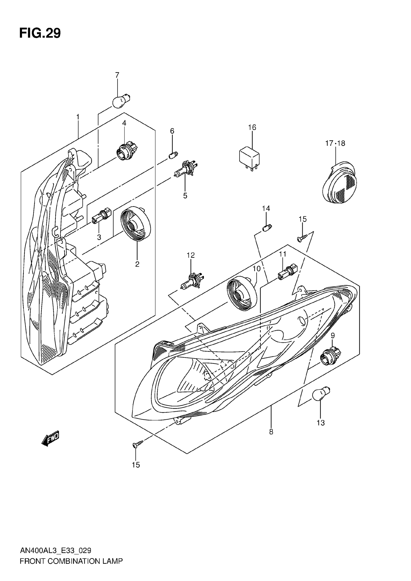 Suzuki AN400AL3 (2013) FRONT COMBINATION LAMP Diagram