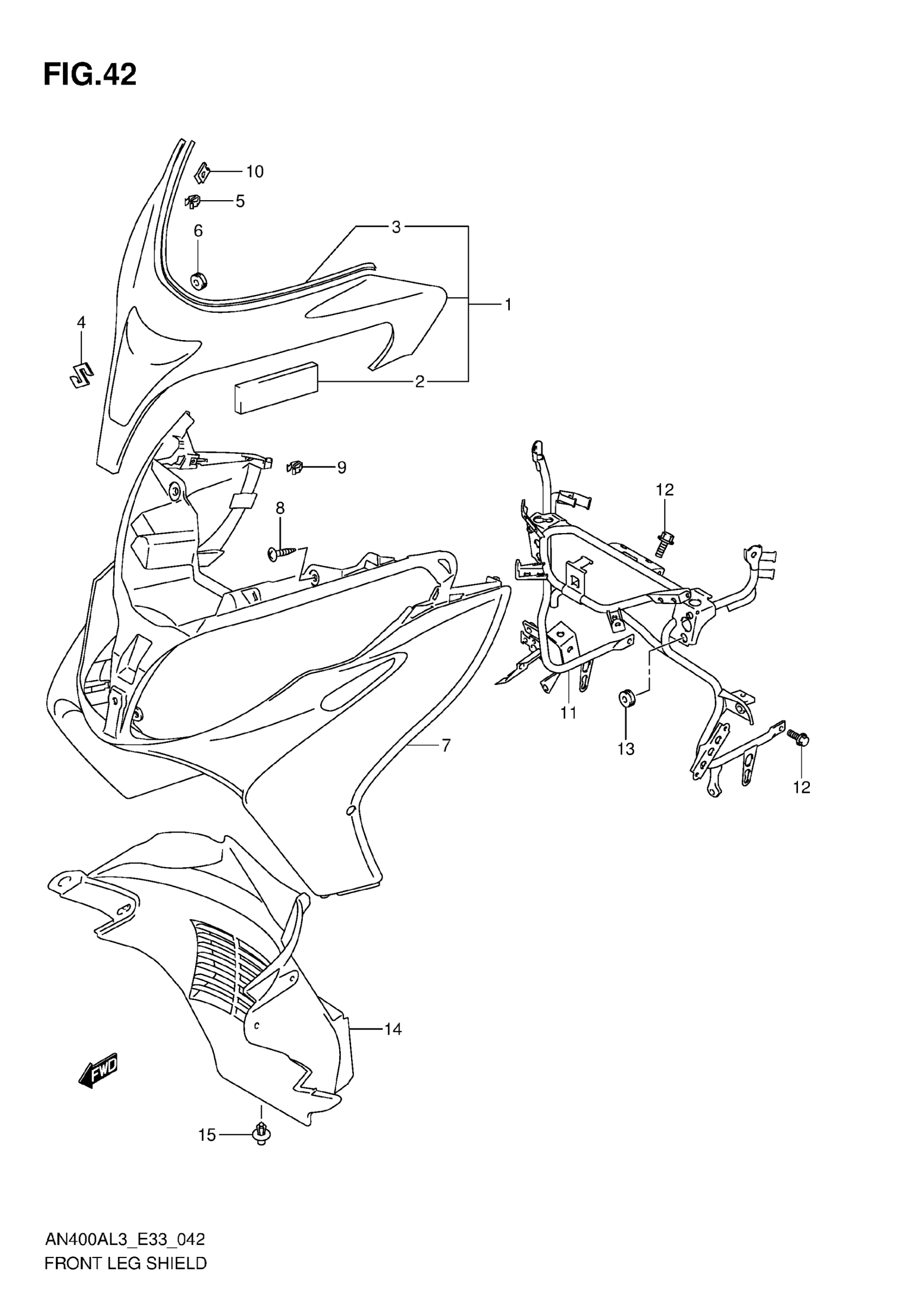 Suzuki AN400AL3 (2013) FRONT LEG SHIELD (AN400ZAL3 E28) Diagram