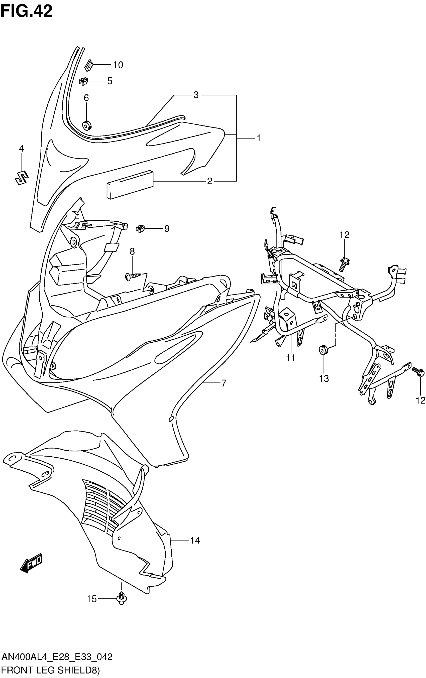 Suzuki AN400AL4 (2014) FRONT LEG SHIELD (AN400ZAL4 E28) Diagram