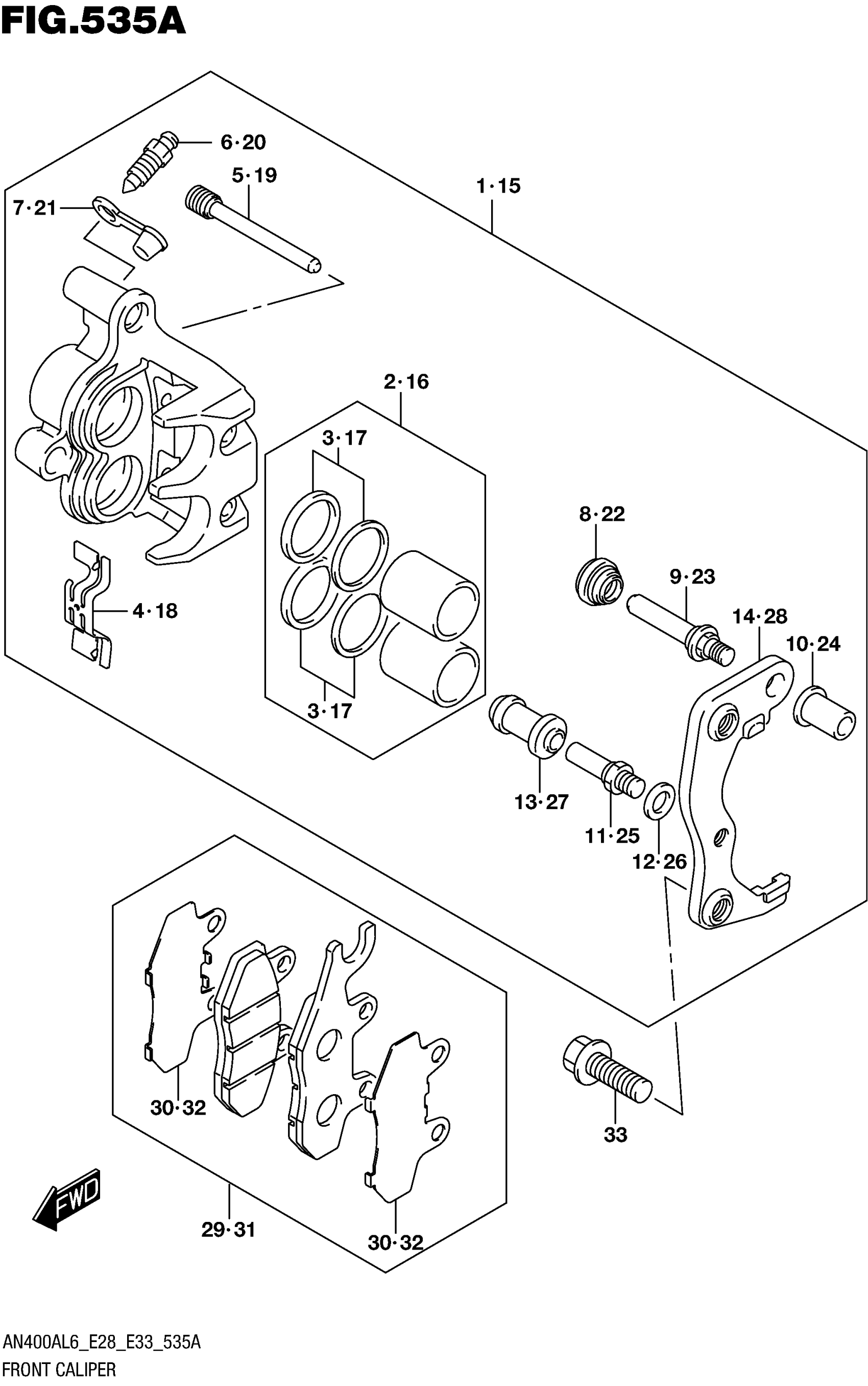 Suzuki AN400AL6 (2016) FRONT CALIPER Diagram