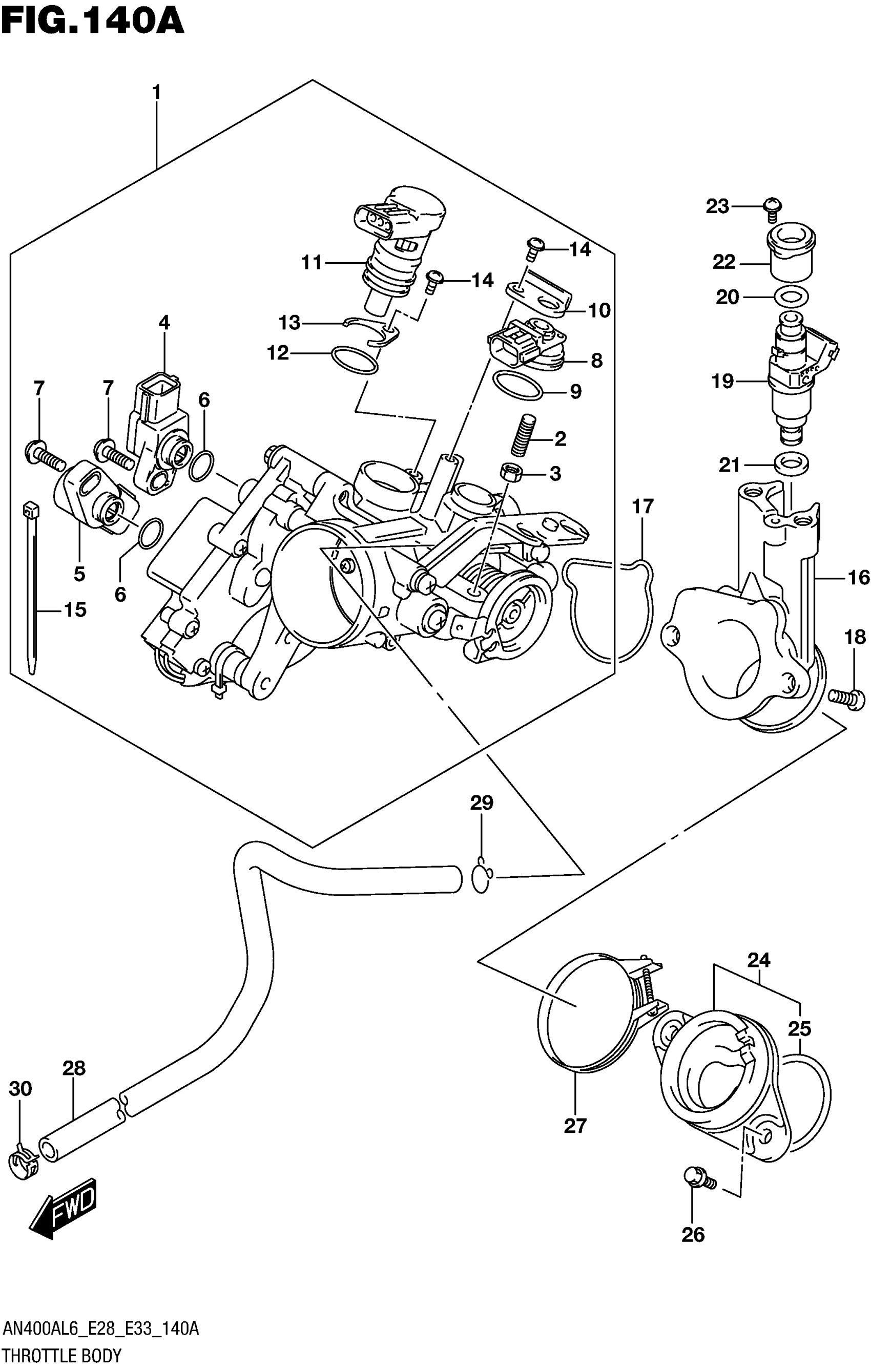 Suzuki AN400AL6 (2016) THROTTLE BODY (AN400AL6 E33) Diagram