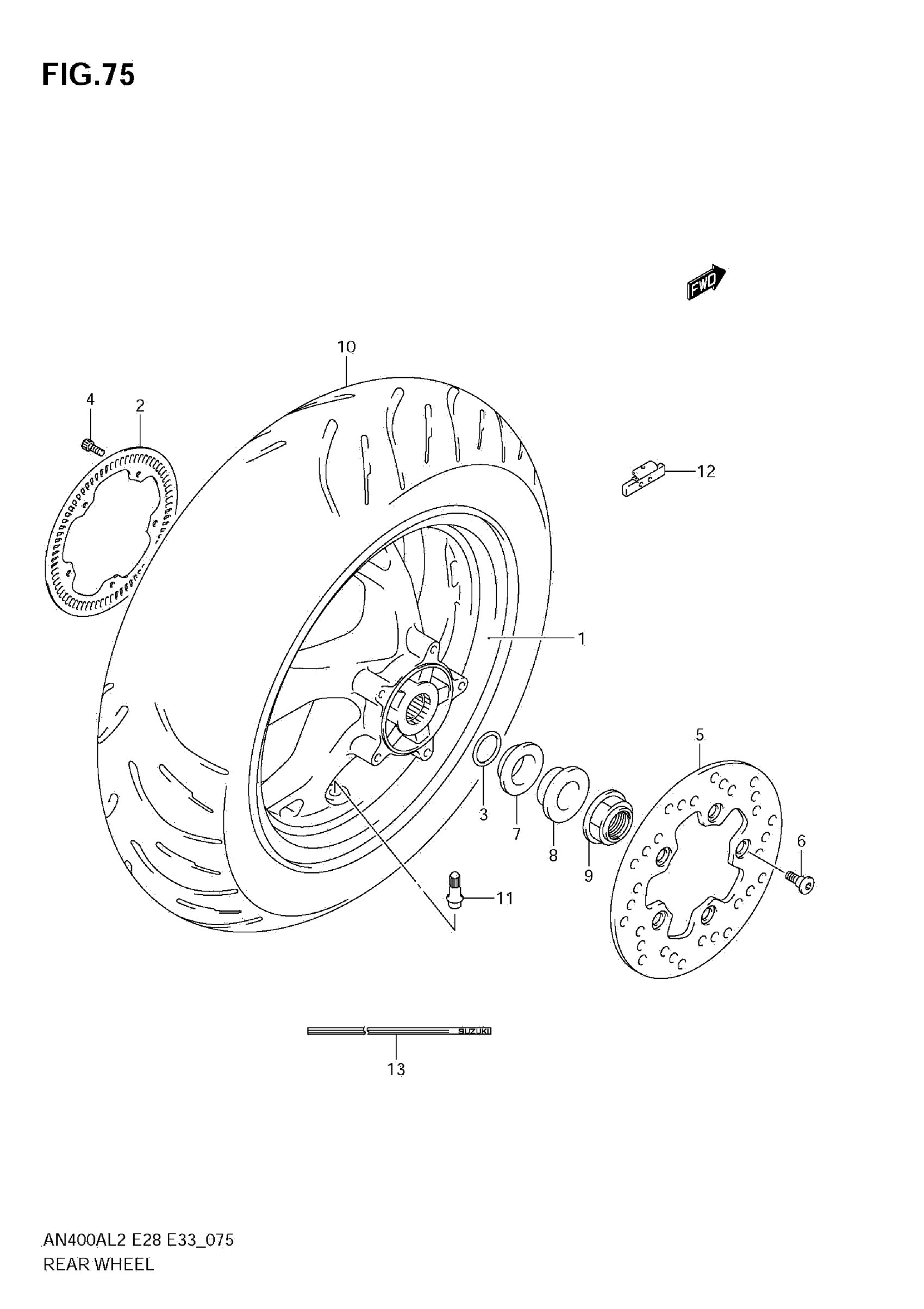 Suzuki AN400ZAL2 (2012) REAR WHEEL Diagram