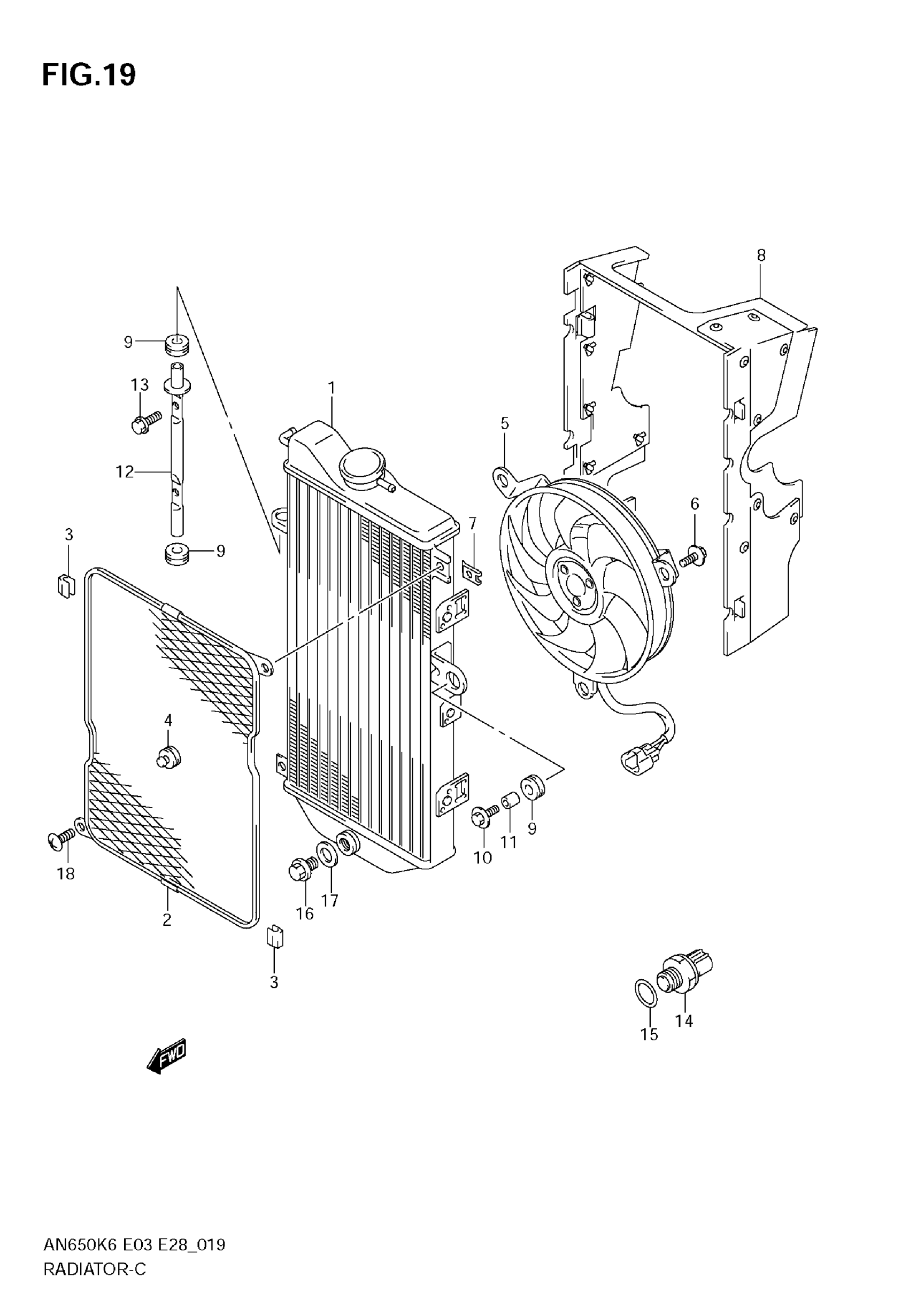 Suzuki AN650 (2009) RADIATOR Diagram