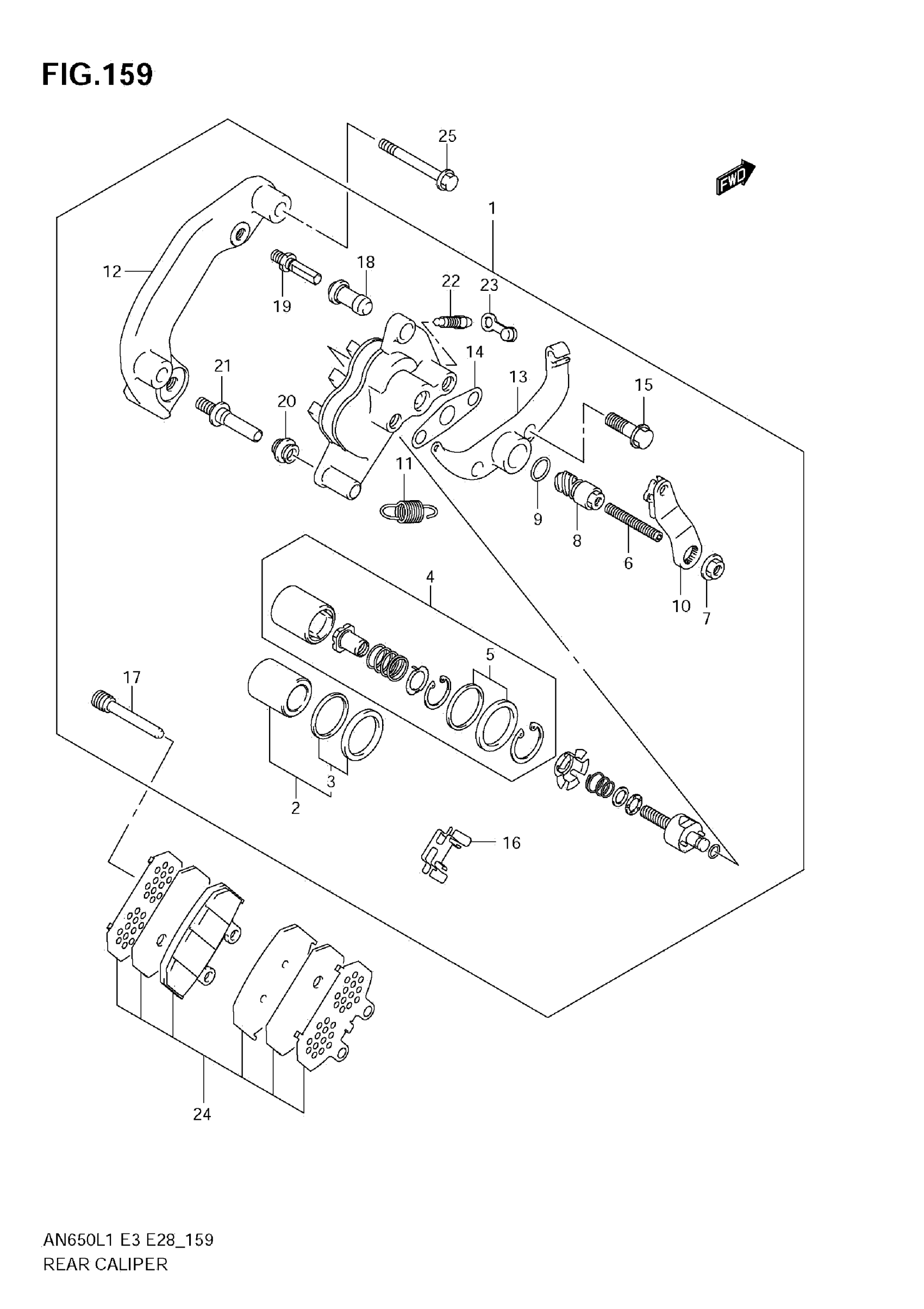 Suzuki AN650AL1 (2011) REAR CALIPER (AN650A L1 E33) Diagram