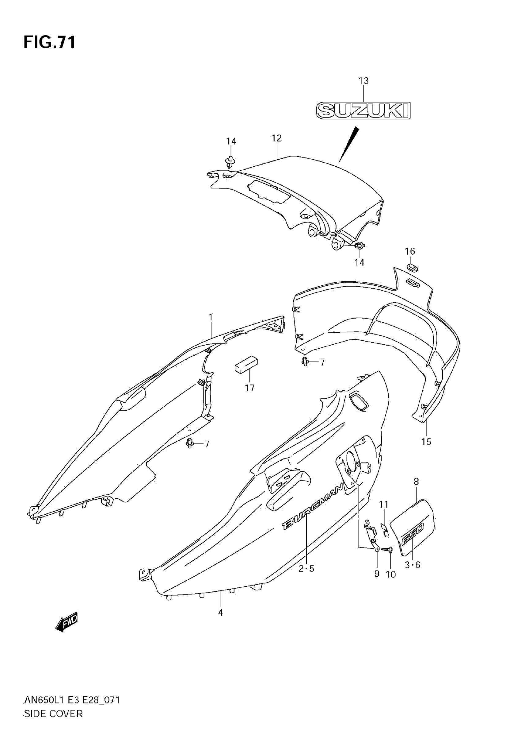Suzuki AN650AL1 (2011) SIDE COVER (AN650 L1 E33) Diagram