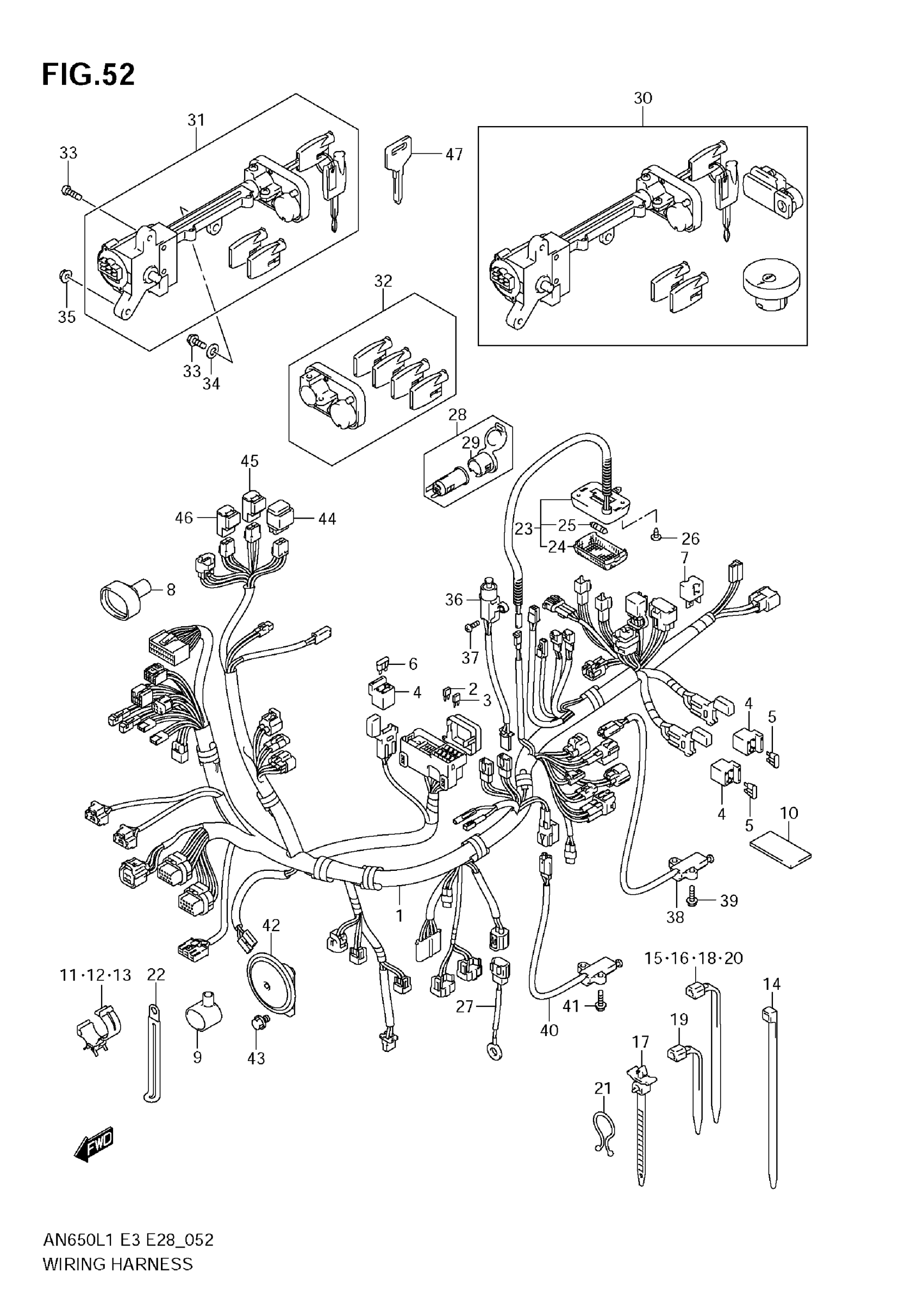 Suzuki AN650AL1 (2011) WIRING HARNESS (AN650 L1 E33) Diagram