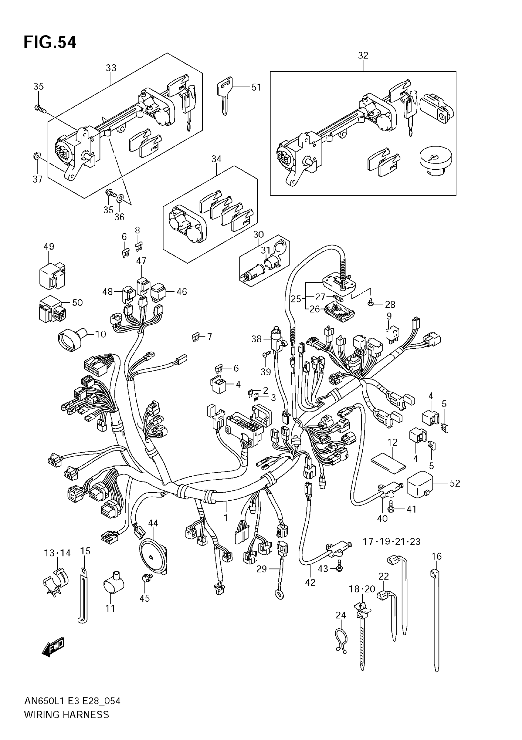 Suzuki AN650AL1 (2011) WIRING HARNESS (AN650A L1 E33) Diagram
