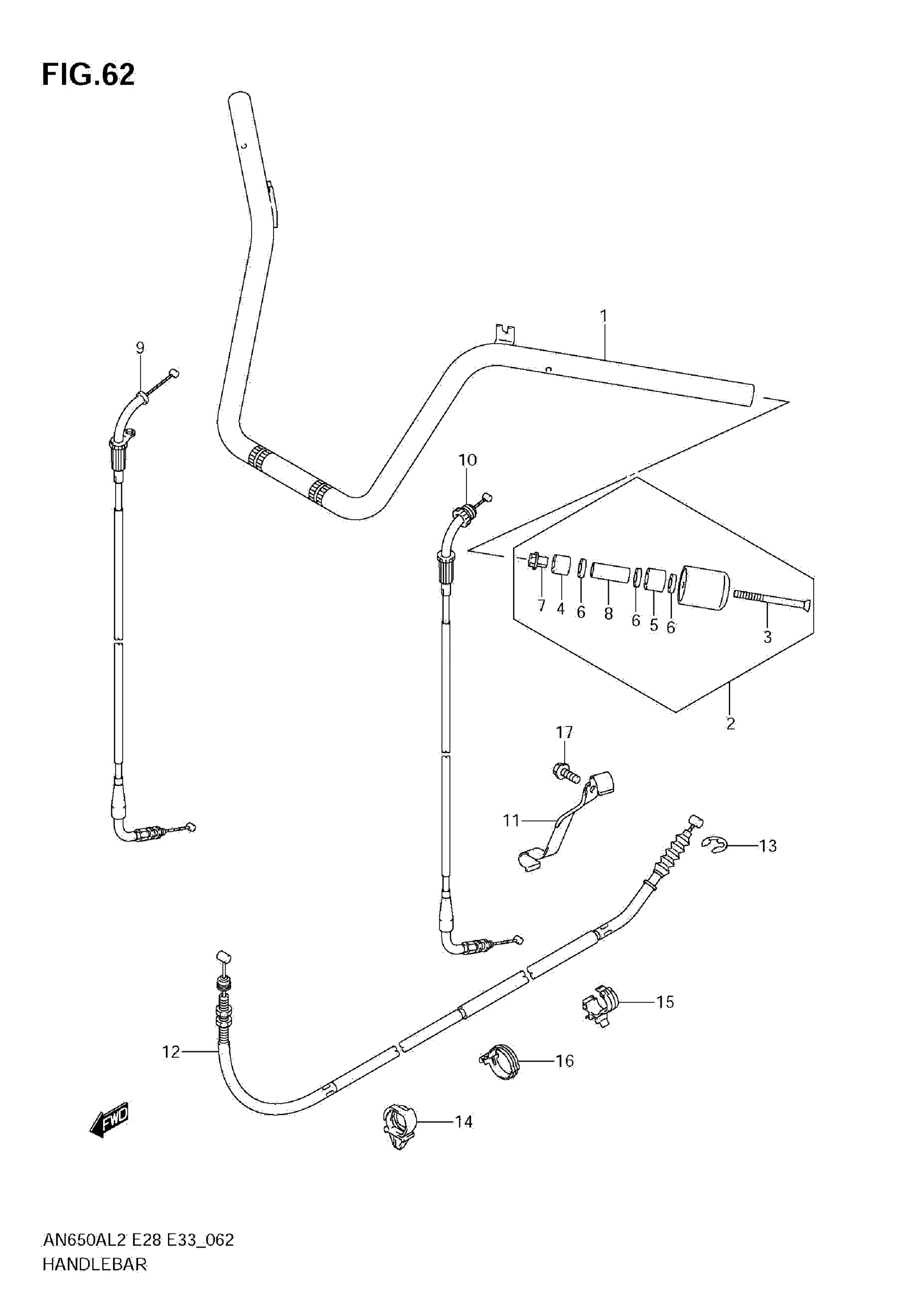 Suzuki AN650AL2 (2012) HANDLEBAR Diagram