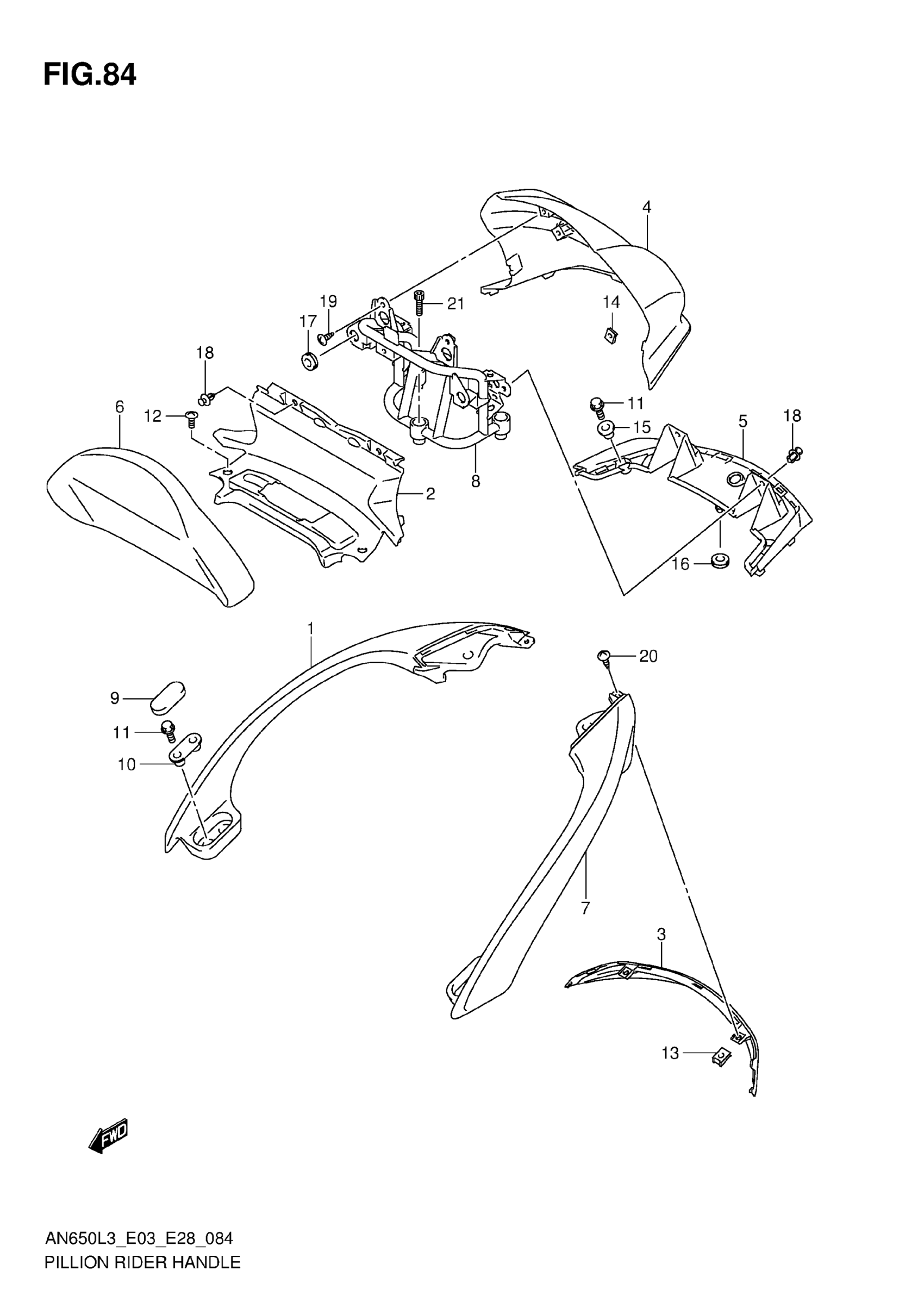Suzuki AN650L3 (2013) PILLION RIDER HANDLE (AN650L3 E03) Diagram