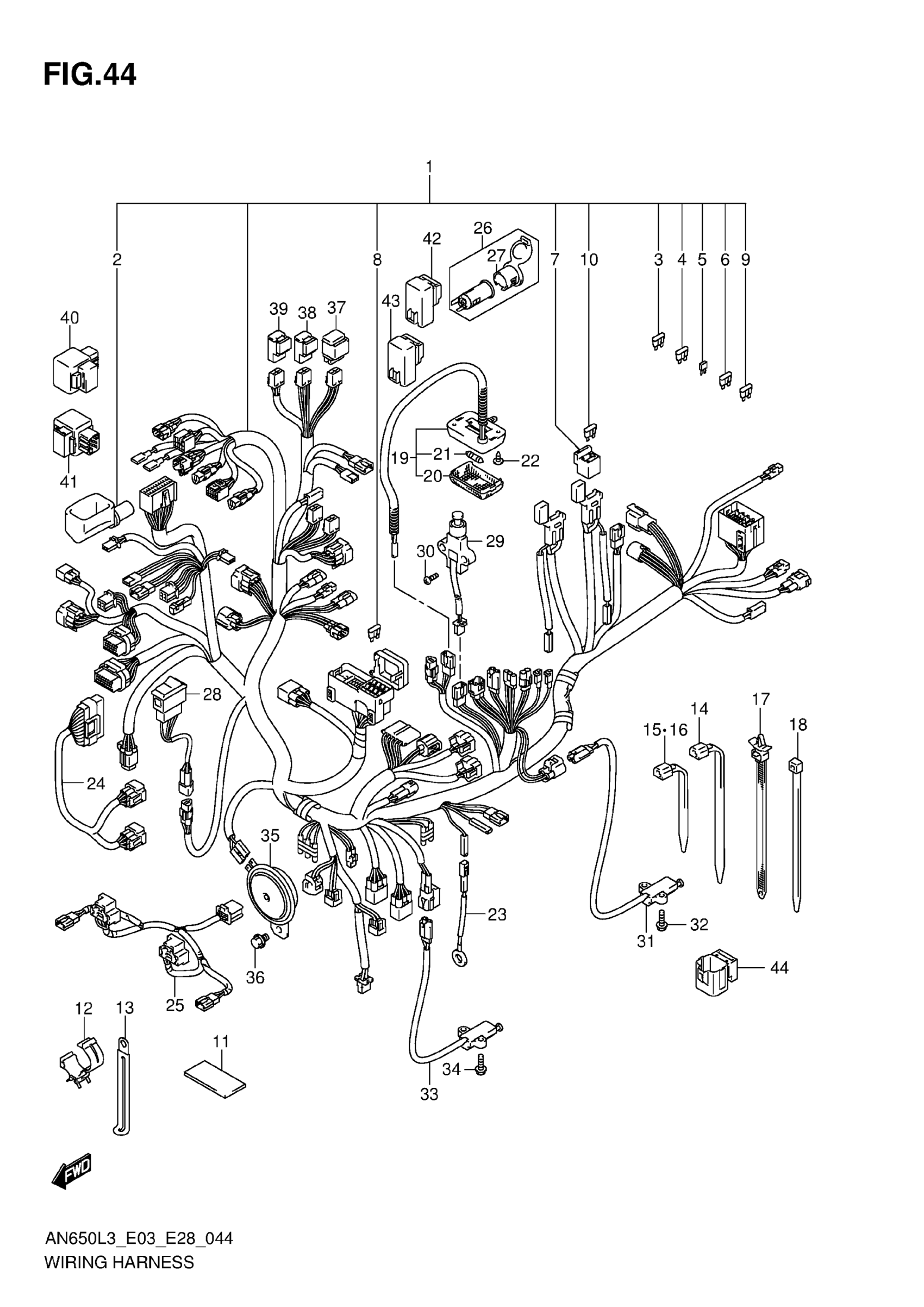 Suzuki AN650L3 (2013) WIRING HARNESS (AN650ZL3 E28) Diagram