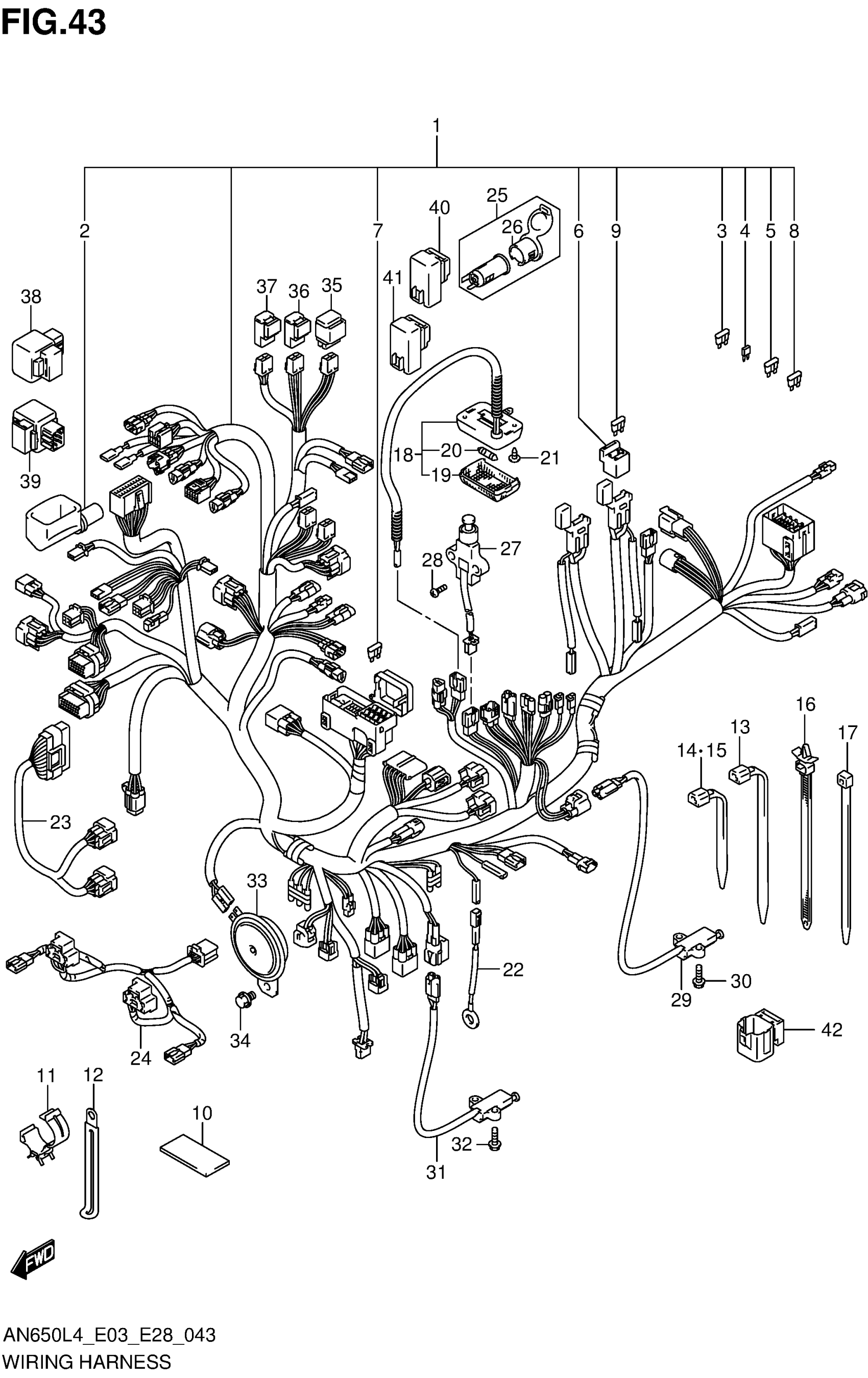 Suzuki AN650L4 (2014) WIRING HARNESS (AN650L4 E33) Diagram