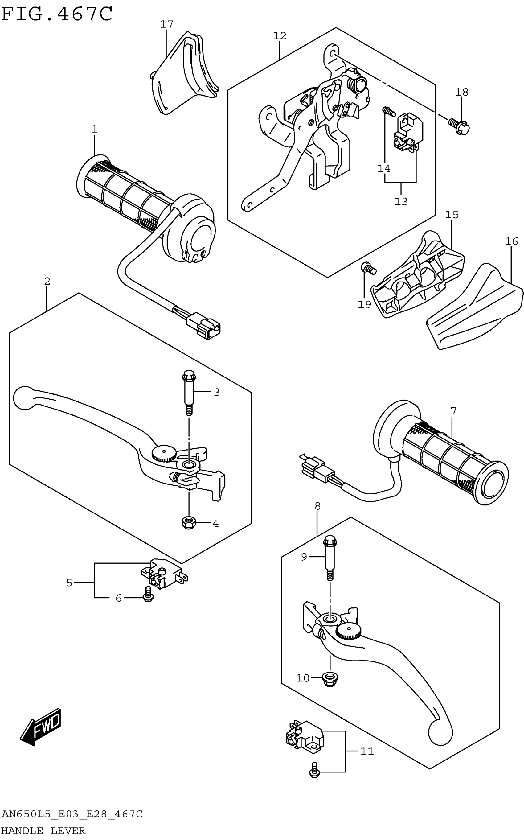 Suzuki AN650L5 (2015) HANDLE LEVER (AN650ZL5 E28) Diagram