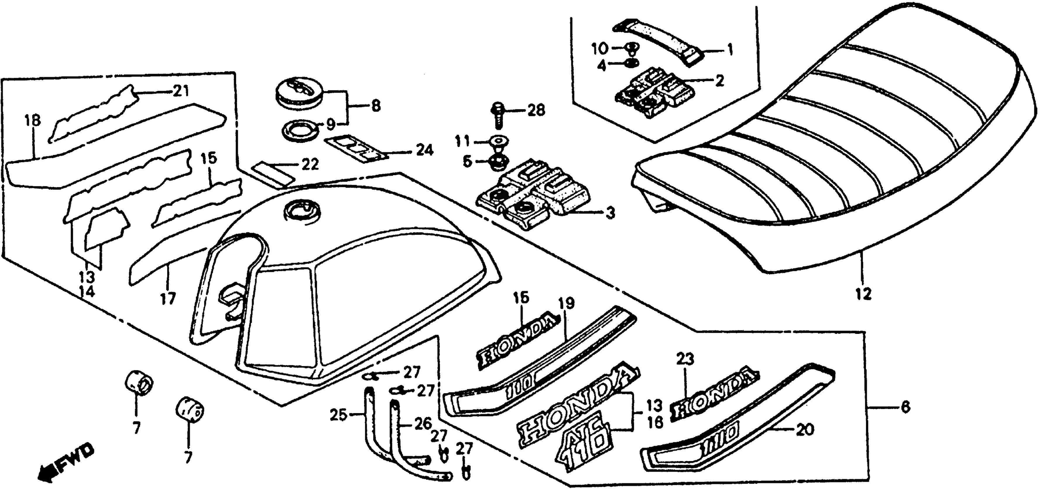 Honda ATC110A (79) ALL TERRAIN CYCLE, JPN, VIN# ATC110-2000005 TO ATC110-2069494 FUEL TANK + SEAT 79-82 Diagram