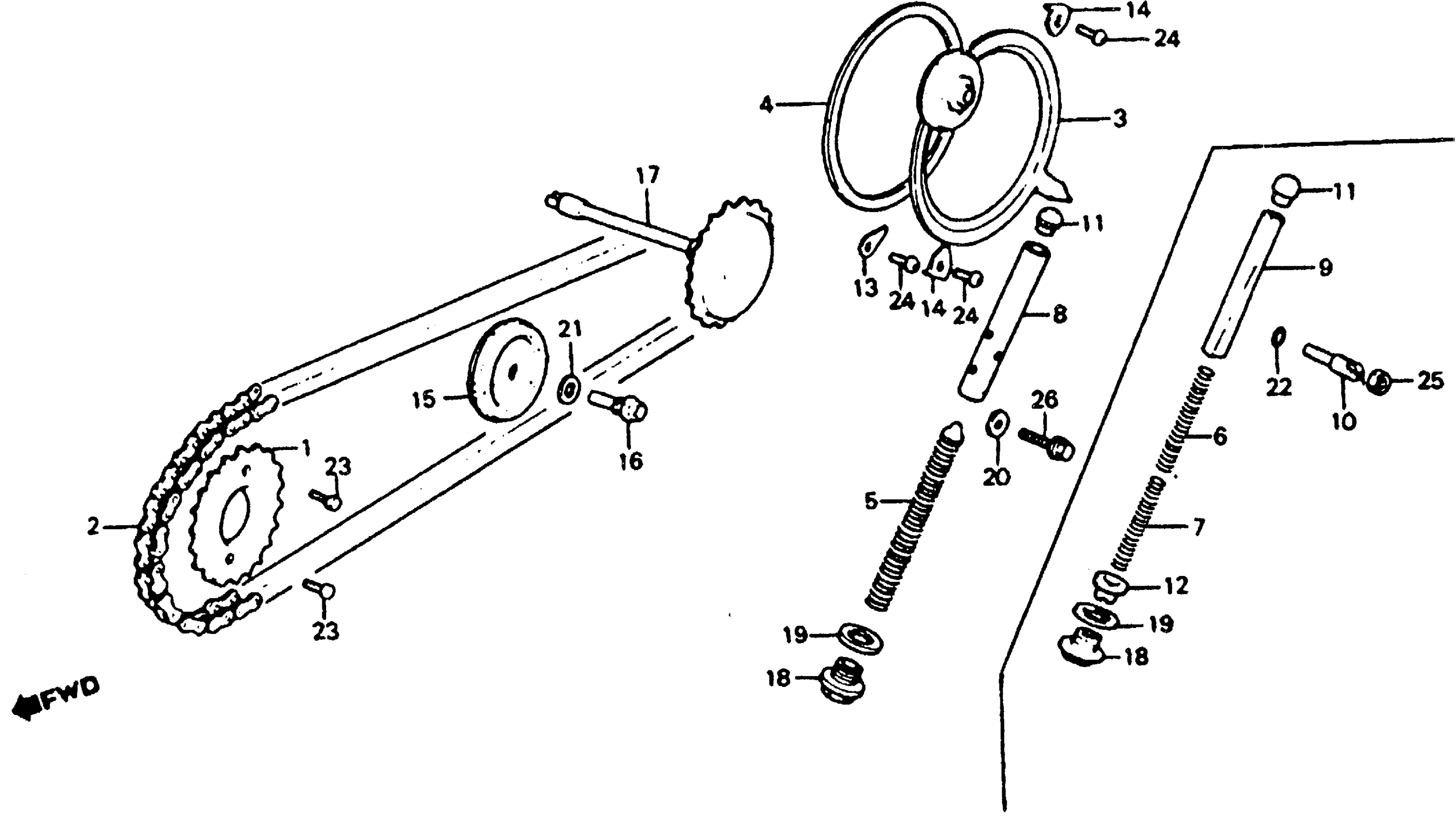 Honda ATC110A (83) ALL TERRAIN CYCLE, JPN, VIN# JH3TB020-DC400008 TO JH3TB020-DC453423 CAM CHAIN + TENSIONER Diagram
