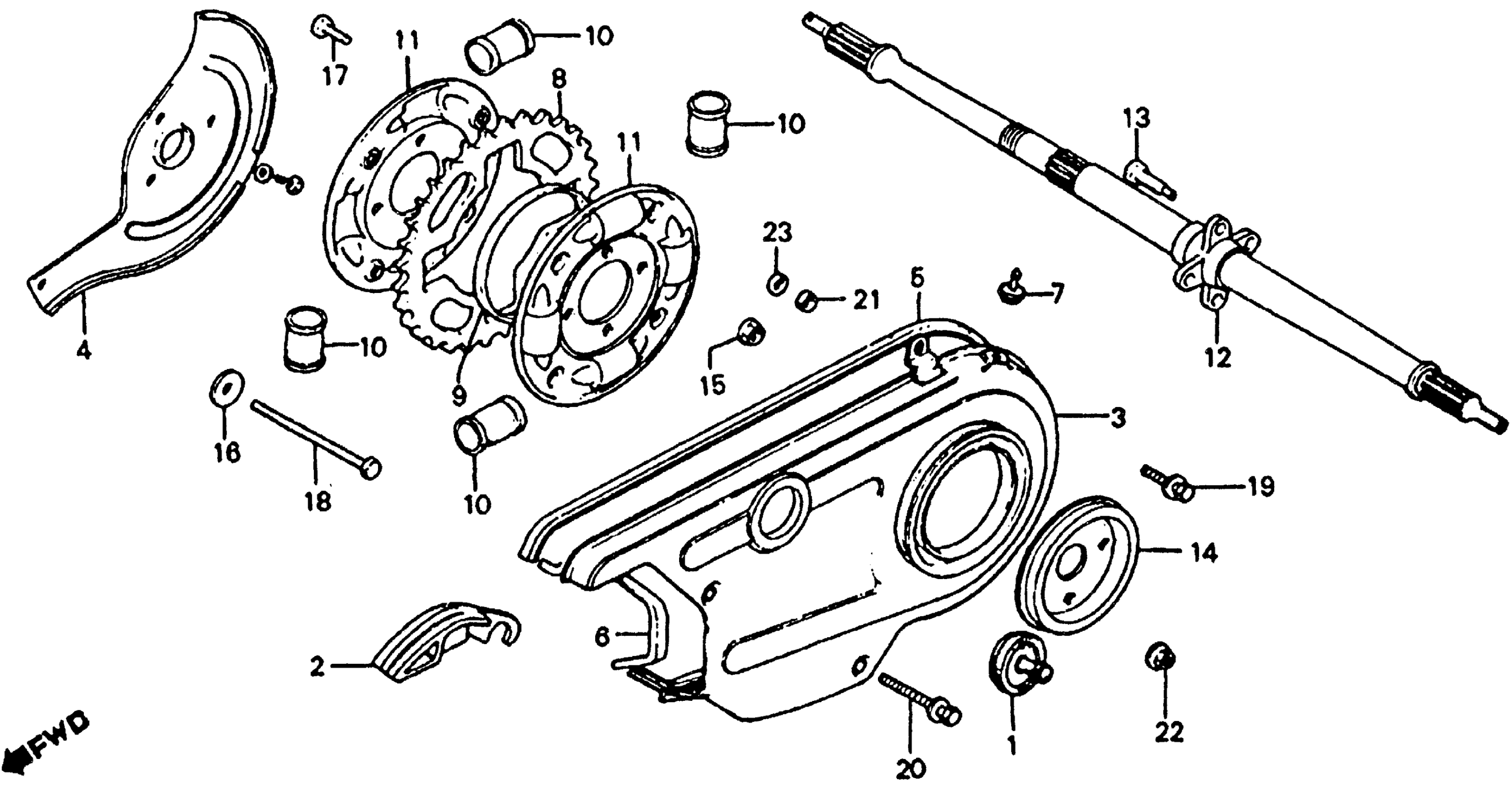 REAR WHEEL AXLE + CHAIN CASE 79-83