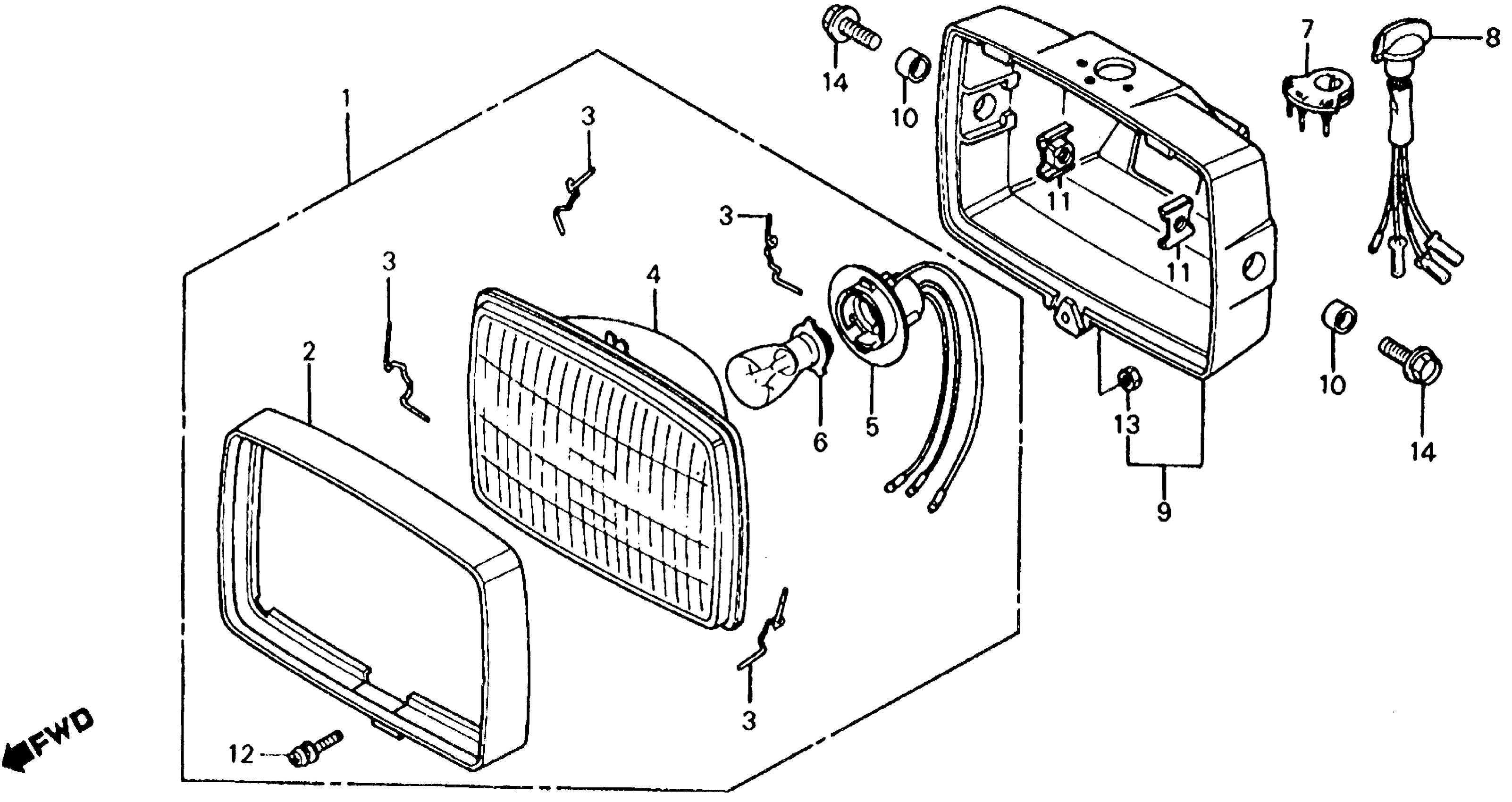 Honda ATC185SA (83) ALL TERRAIN CYCLE, JPN, VIN# JH3TB010-DC300013 ATC185S HEADLIGHT 81-83 Diagram