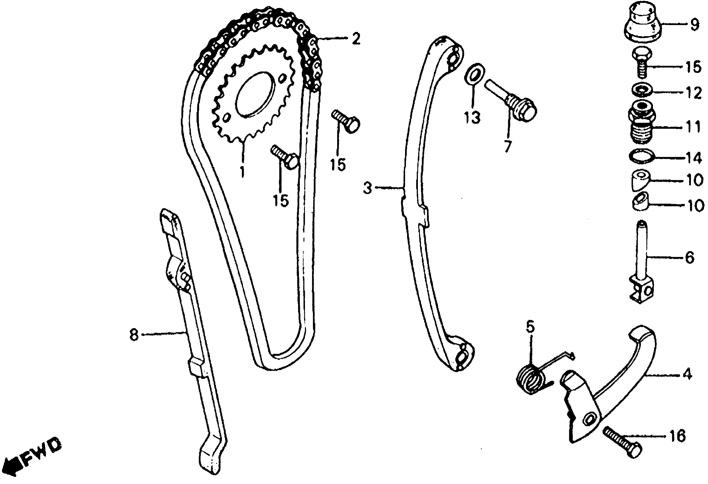 Honda ATC185SA (83) ALL TERRAIN CYCLE, JPN, VIN# JH3TB010-DC300013 CAM CHAIN + TENSIONER Diagram