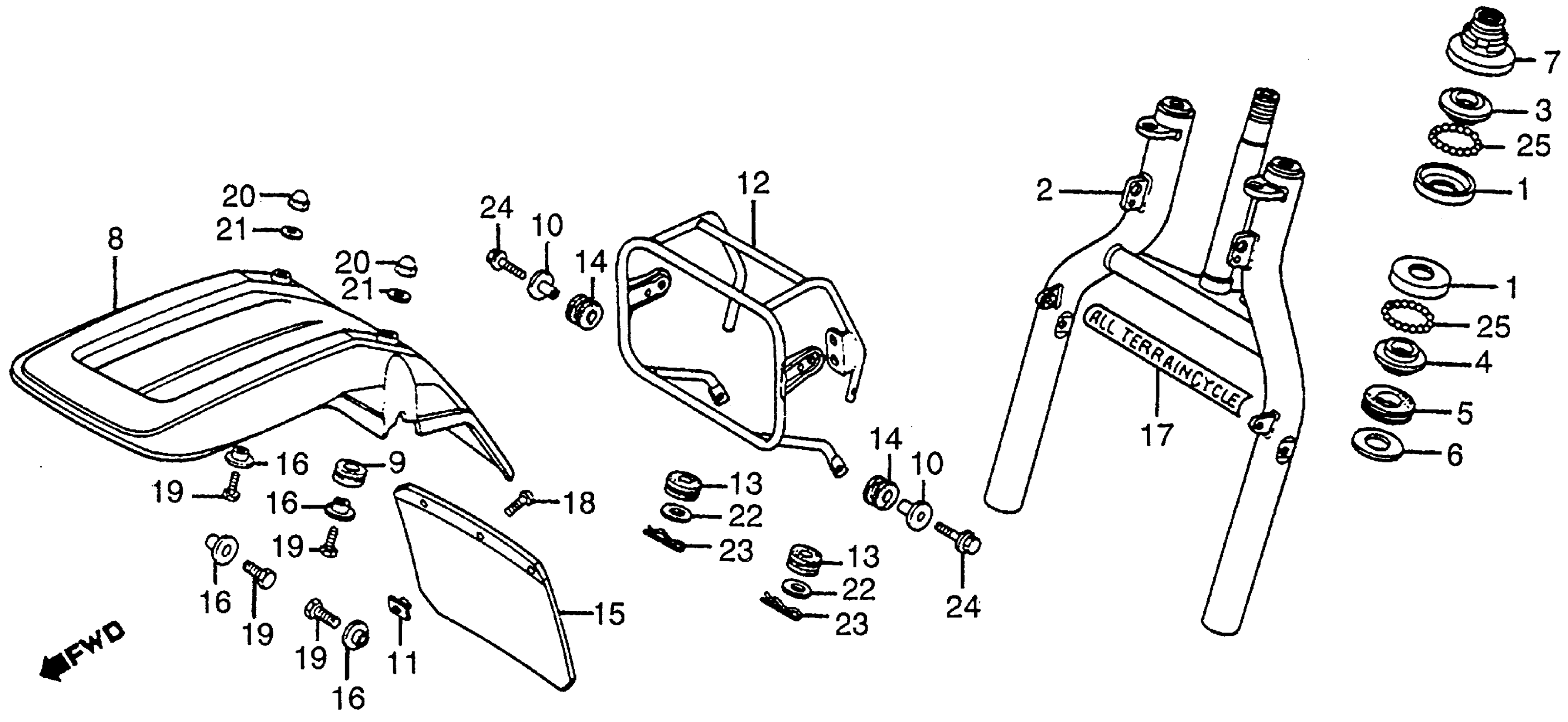 Honda ATC200EA (83) BIG RED, JPN, VIN# JH3TB051-DC203548 FRONT FORK + FRONT FENDER Diagram
